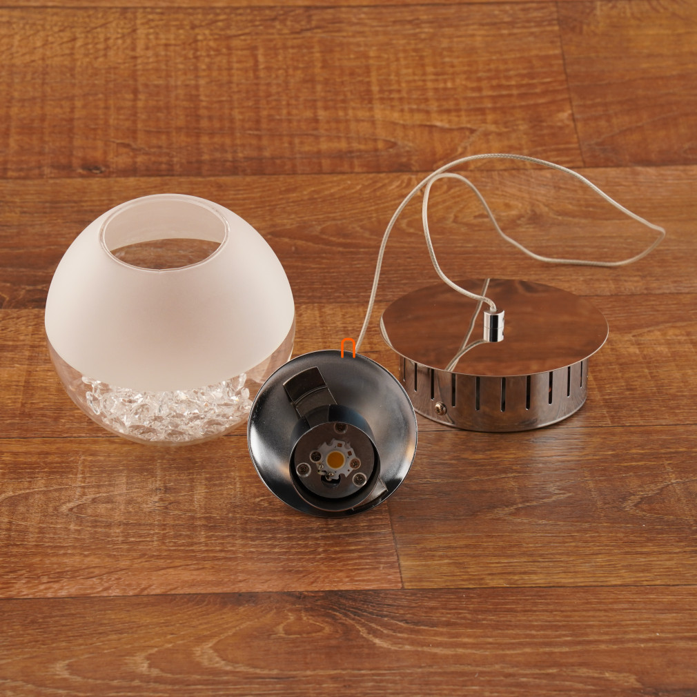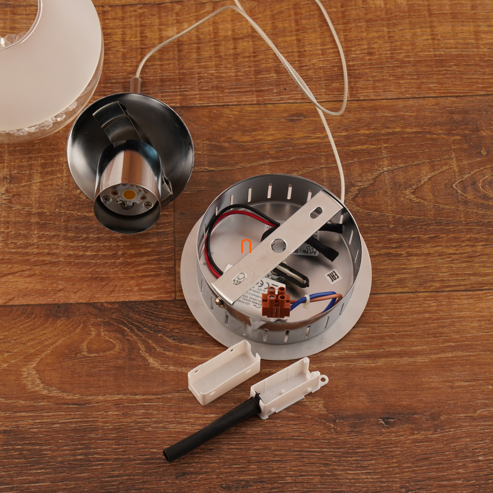 Majoritatea lămpilor montate pe tavan sunt echipate din fabrică cu un cablu de 110 cm și un element de acoperire (cunoscut sub numele de „rozeta de tavan”) care ascunde conexiunea la rețeaua electrică și montarea. Lungimea suspensiei poate fi scurtată folosind șurubul de pe elementul de acoperire al tavanului, dacă utilizatorul dorește să atârne lampa la o lungime mai mică de 110 cm în cameră. Cablul în exces poate fi ascuns sub elementul de acoperire al tavanului (fără reinstalare) sau, dacă nu există suficient spațiu, poate fi tăiat și reconectat la blocul terminal într-un mod estetic, ceea ce trebuie făcut cu alimentarea deconectată sau cu ajutorul unui electrician profesionist.