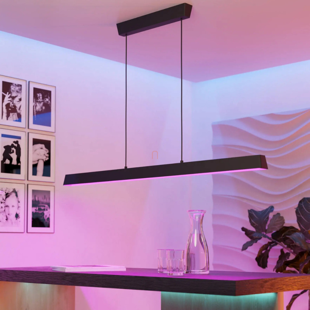 Simolaris RGBW Eglo 99603 este o lampă LED suspendată reglabilă de 35 W, cu un design modern și minimalist, în culori alb și negru. Corp de iluminat oferă un flux luminos de 4200 lumeni, iar sursa sa de lumină este un modul LED integrat care funcționează într-o gamă variabilă de culori albe (2700–6500 K) și RGBW. Luminozitatea și temperatura culorii pot fi controlate prin intermediul unei aplicații sau al unei telecomenzi opționale. Produsul este fabricat din aluminiu și plastic, având dimensiunile de 1220 mm lungime, 55 mm lățime și 1100 mm înălțime. Are protecție IP20, fiind potrivit pentru utilizare în interior. Lampa cântărește 2,56 kg și este fabricată de EGLO.