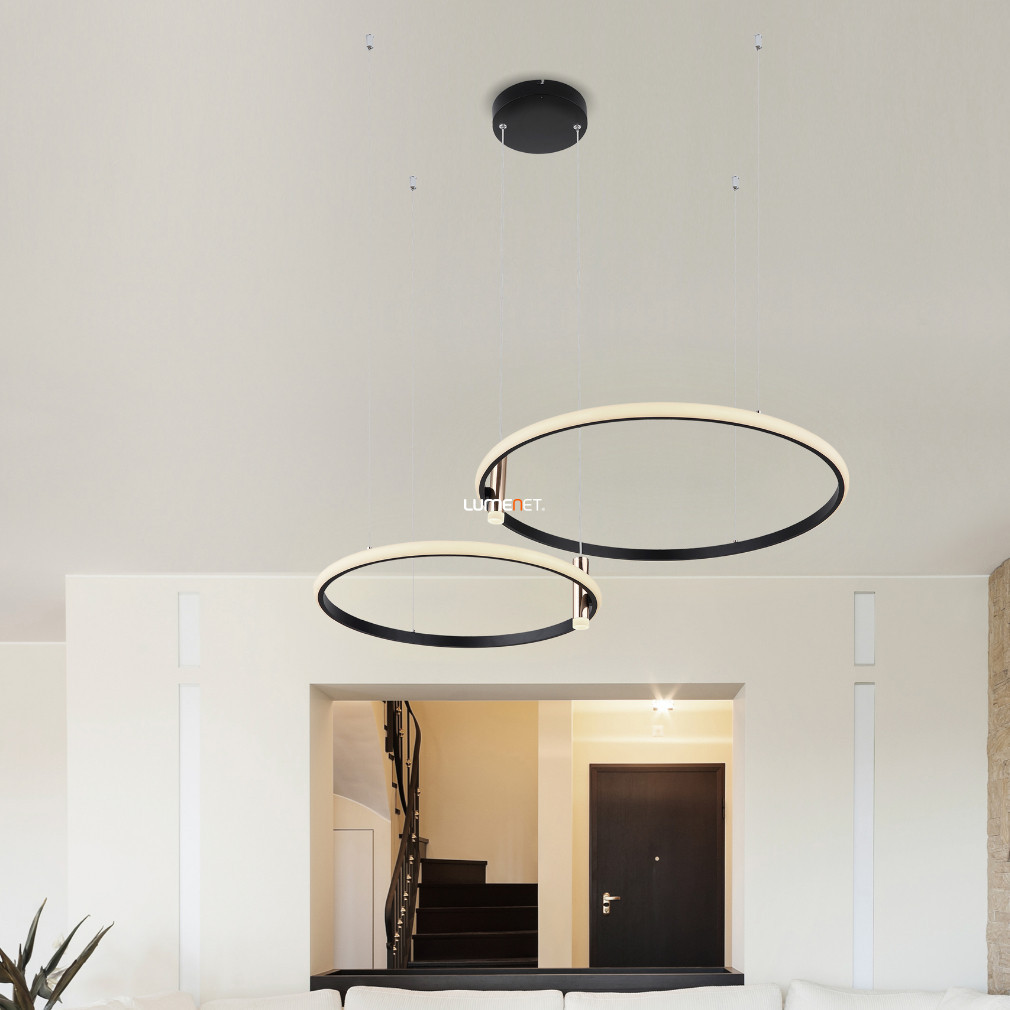 Lampa suspendată cu LED-uri și telecomandă Coco Globo 67300H este un corp de iluminat modern, minimalist, cu un modul LED încorporat de 55 W. Lampa are un flux luminos de 2000 lumeni și o temperatură de culoare care poate fi reglată între 2700 și 6000 Kelvin, oferind atât lumină albă rece, cât și caldă. Iluminatul poate fi controlat cu o telecomandă, care oferă funcții de lumină nocturnă și memorie, pe lângă reglarea luminozității și a temperaturii culorii. Materialele principale ale lămpii sunt metalul și plasticul, iar culorile sale sunt negru și opal. Dimensiuni: lungime 1025 mm, lățime 700 mm, înălțime 1500 mm, greutate 3,46 kg. Produsul are un grad de protecție IP20 și este potrivit pentru utilizare în interior. Sursa de lumină LED face parte din corp și nu necesită un bec separat. Dimensiuni ambalaj: 76 x 76 x 16 cm. Fabricat de Globo.