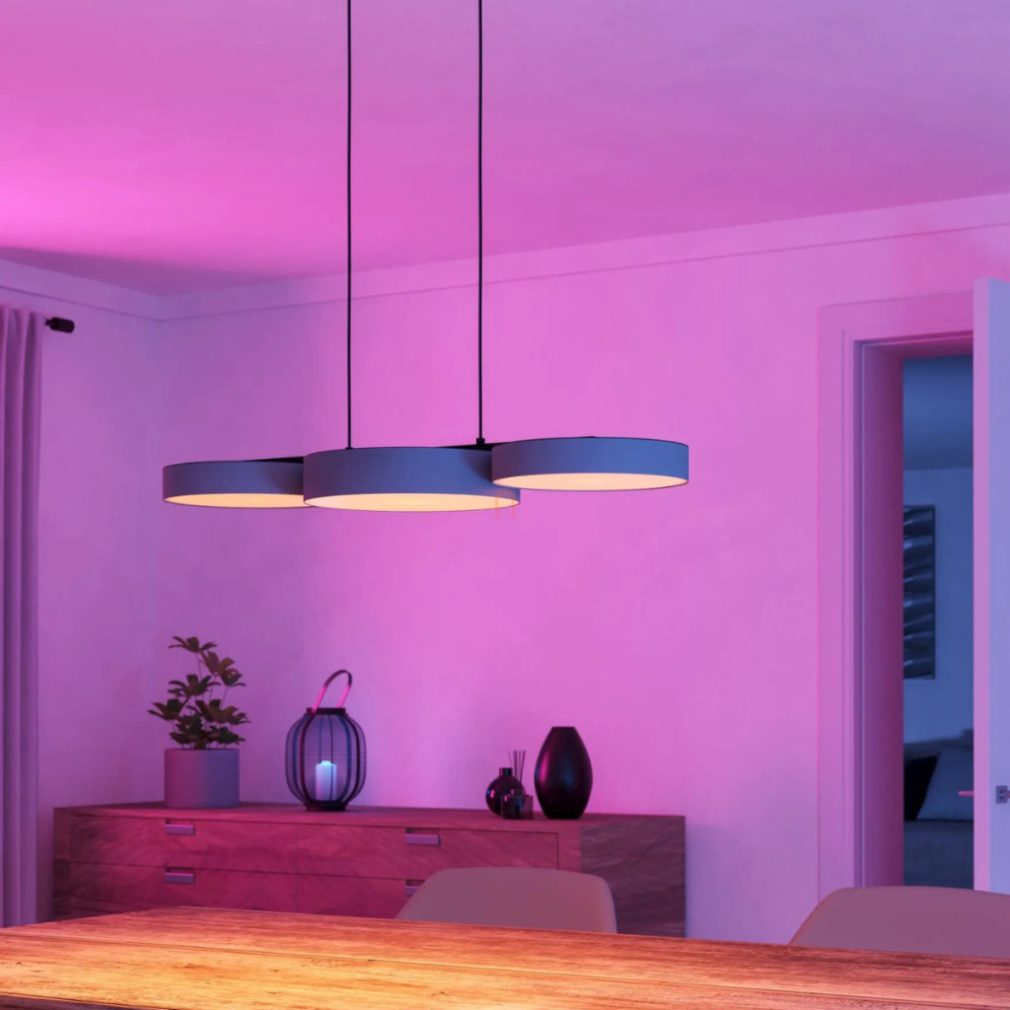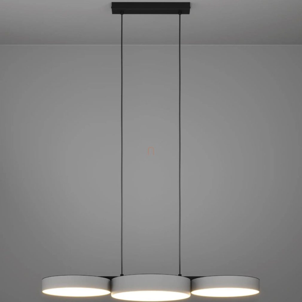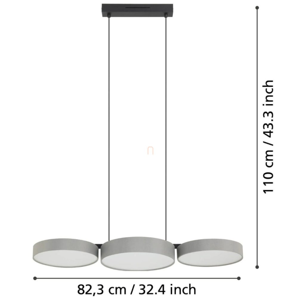 Lampa suspendată LED Smart, 30x82 cm - Barbano-Z-RGBW Eglo 900856 este o soluție modernă de iluminat care funcționează cu un modul LED de 22,5 wați și oferă un flux luminos de 2550 lumeni. Temperatura culorii lămpii poate fi reglată într-un interval larg între 2700 și 6500 Kelvin, precum și cu culori RGB, oferind lumină albă și colorată variabilă. Este controlată prin intermediul unei aplicații sau al unei telecomenzi opționale, permițând reglarea precisă a luminozității și a temperaturii culorii. Produsul are protecție IP20 și este potrivit în principal pentru utilizare în interior. Este fabricat din oțel, material textil și plastic și este disponibil într-o combinație de culori negru, gri și alb. Dimensiunile sale sunt 820 mm lungime, 300 mm lățime și 1100 mm înălțime maximă. Corpul de iluminat include o sursă de lumină LED și un soclu pentru modul LED. Codul său logistic este 900856 și este fabricat de EGLO.
