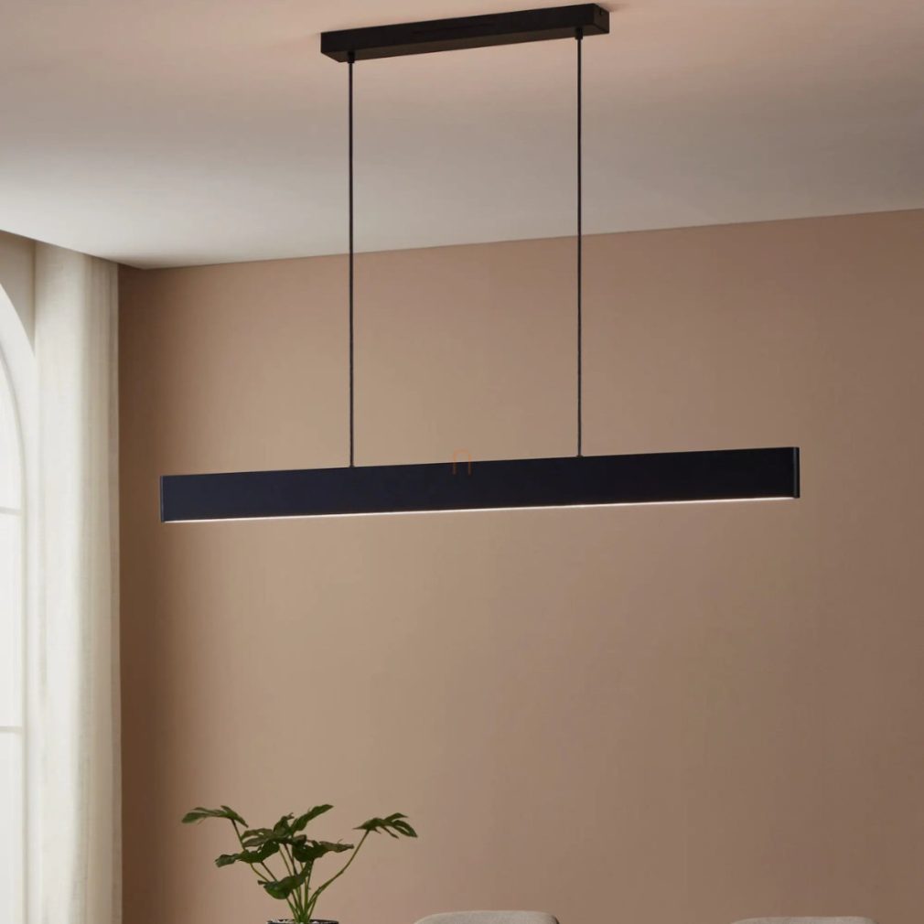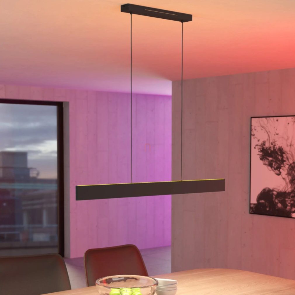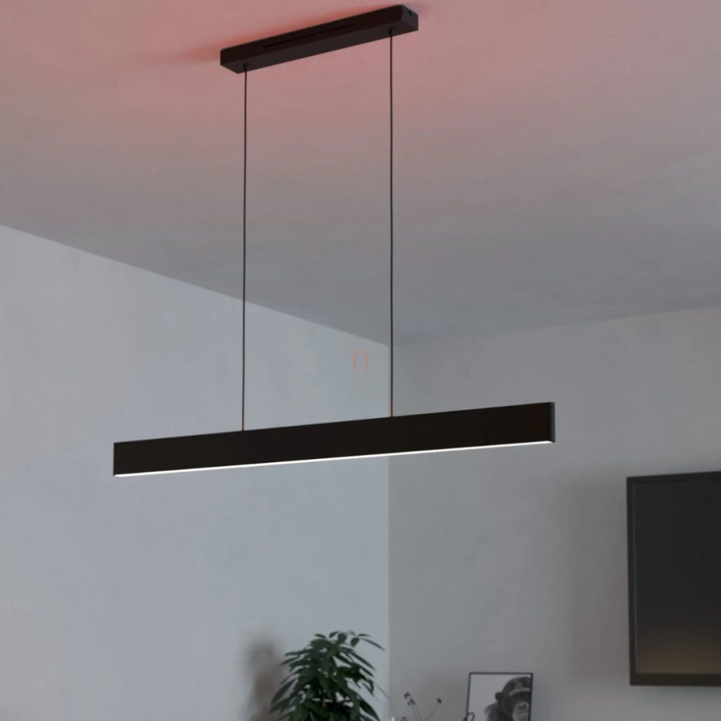Lampa suspendată inteligentă LED Andreas-Z-RGBW Eglo 900878 este o soluție modernă de iluminat care funcționează cu un modul LED de 38 W și oferă un flux luminos de 4600 lumeni. Temperatura culorii lămpii poate fi reglată între 2700 și 6500 Kelvin, iar aceasta oferă și modul de culoare RGB, asigurând o gamă de opțiuni de iluminare colorată, pe lângă lumina albă. Luminozitatea și culorile pot fi controlate prin intermediul unei aplicații sau al unei telecomenzi. Corpul lămpii este realizat dintr-o combinație de oțel și plastic alb și negru și are protecție IP20. Dimensiunile produsului sunt: lungime 1170 mm, lățime 70 mm, înălțime 1100 mm și greutate 2,09 kg. Dimensiunile ambalajului sunt: 1190 mm lungime, 110 mm lățime și 90 mm înălțime. Produsul conține un modul LED care nu poate fi înlocuit și este disponibil de la marca Eglo.