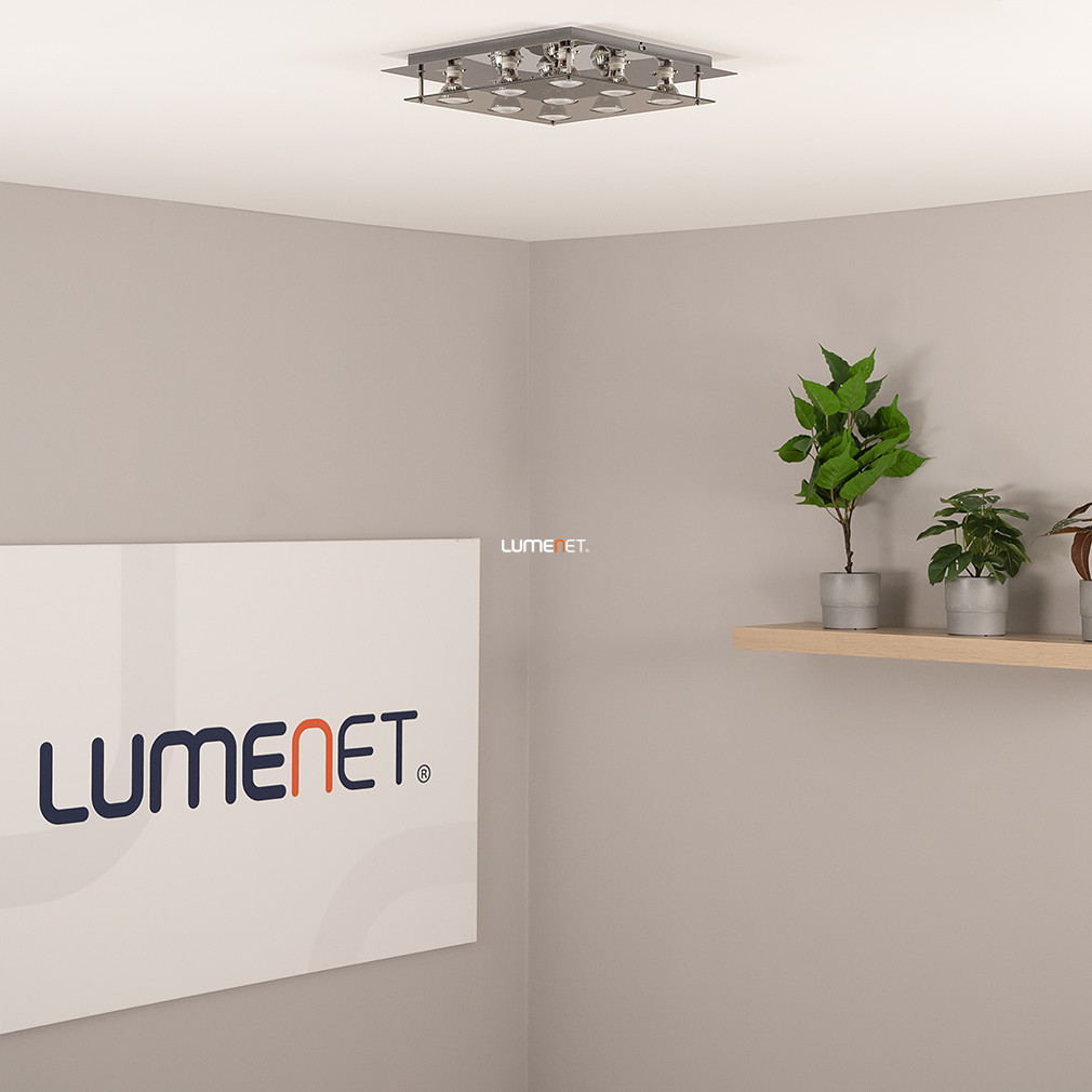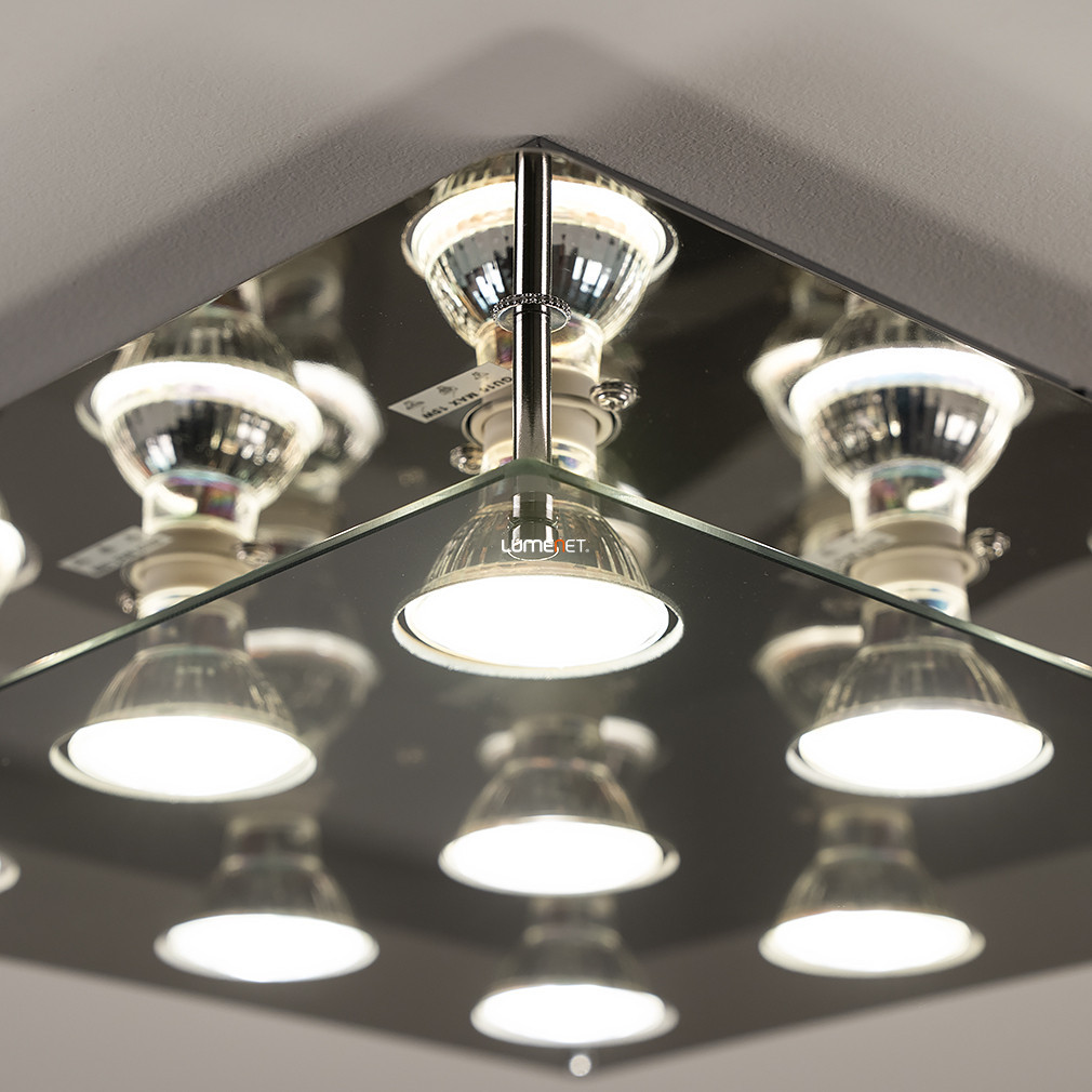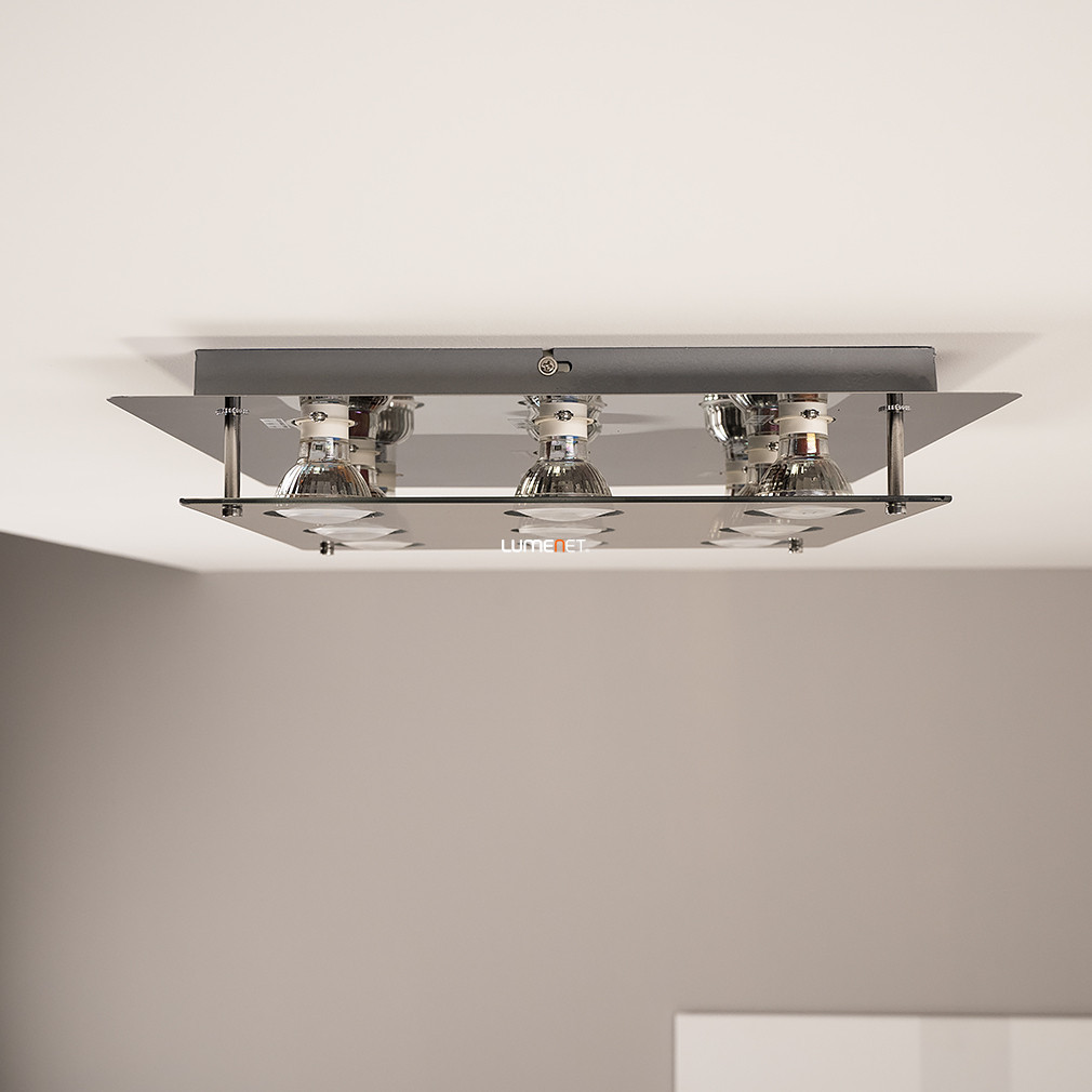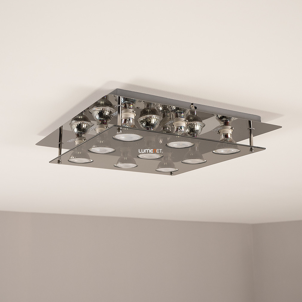 Lampa modernă de tavan Naomi Rábalux 2643 are nouă socluri GU10, fiecare dintre acestea putând fi utilizat cu o sursă de lumină LED înlocuibilă. Lampa este fabricată din materiale metalice și sticlă de înaltă calitate, cu finisaj fumuriu și cromat, care se potrivește stilului interioarelor moderne. Produsul este conceput pentru montare pe tavan, având o lungime și o lățime de 380 mm și o greutate de 2,88 kg. Lampa are protecție IP20, fiind potrivită pentru utilizare în interior. Setul include surse de lumină, a căror temperatură de culoare, flux luminos și putere pot fi selectate în funcție de necesități, utilizând surse de lumină înlocuibile, dar lampa nu este reglabilă. Dimensiunile ambalajului produsului sunt: 38 cm lungime, 5 cm lățime și 49 cm înălțime.