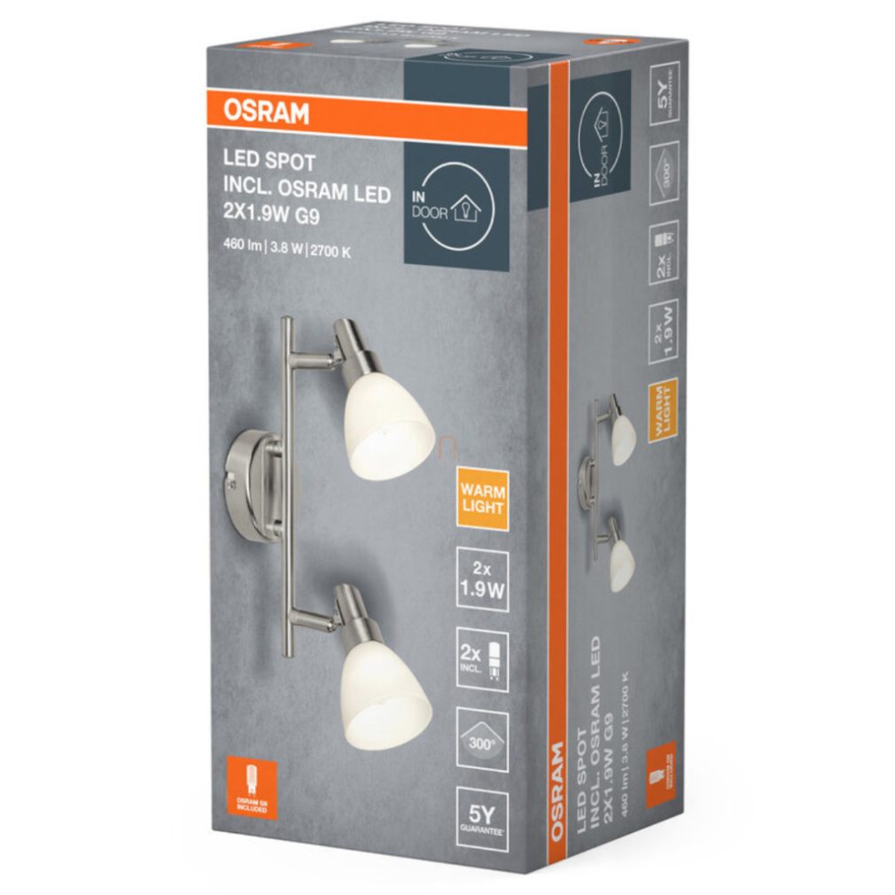 Lampa Osram LED spot G9 cu sursă de lumină, abajur opal, două brațe