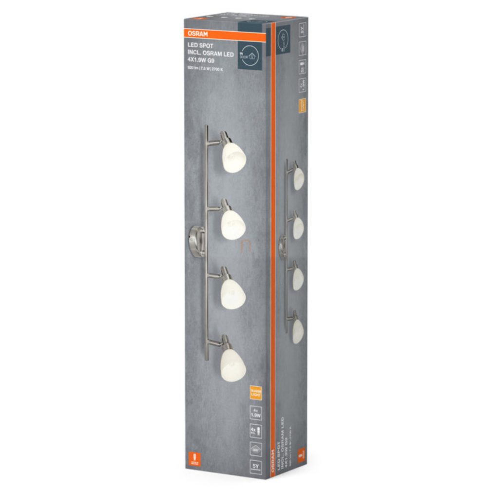 Lampa Osram LED spot G9 cu sursă de lumină, abajur opal, patru brațe