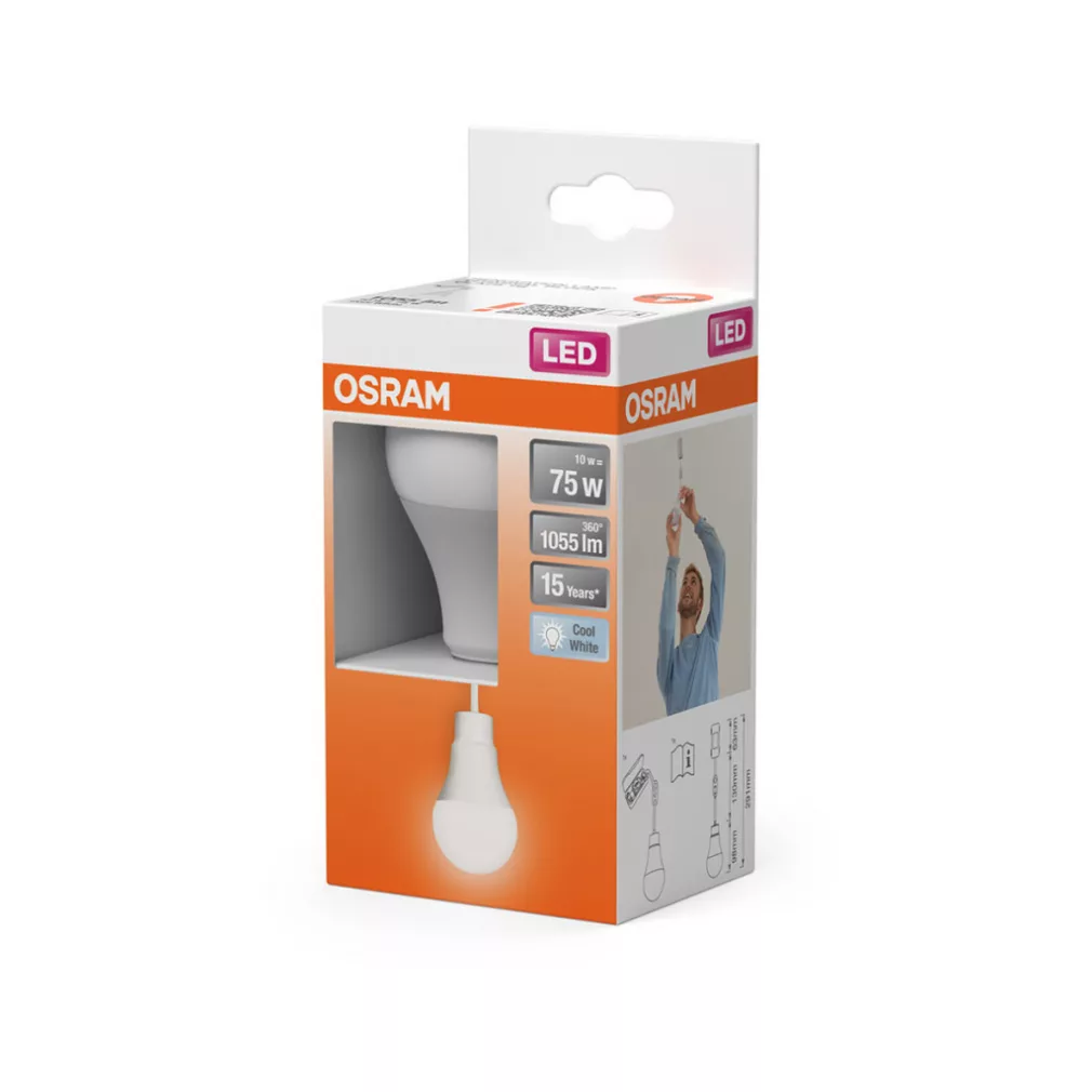 Lampa Osram Renovation Lamp cu sursă de lumină LED E27 pentru renovări, 10 W, 1055 lm, 4000 K, alb rece, opal