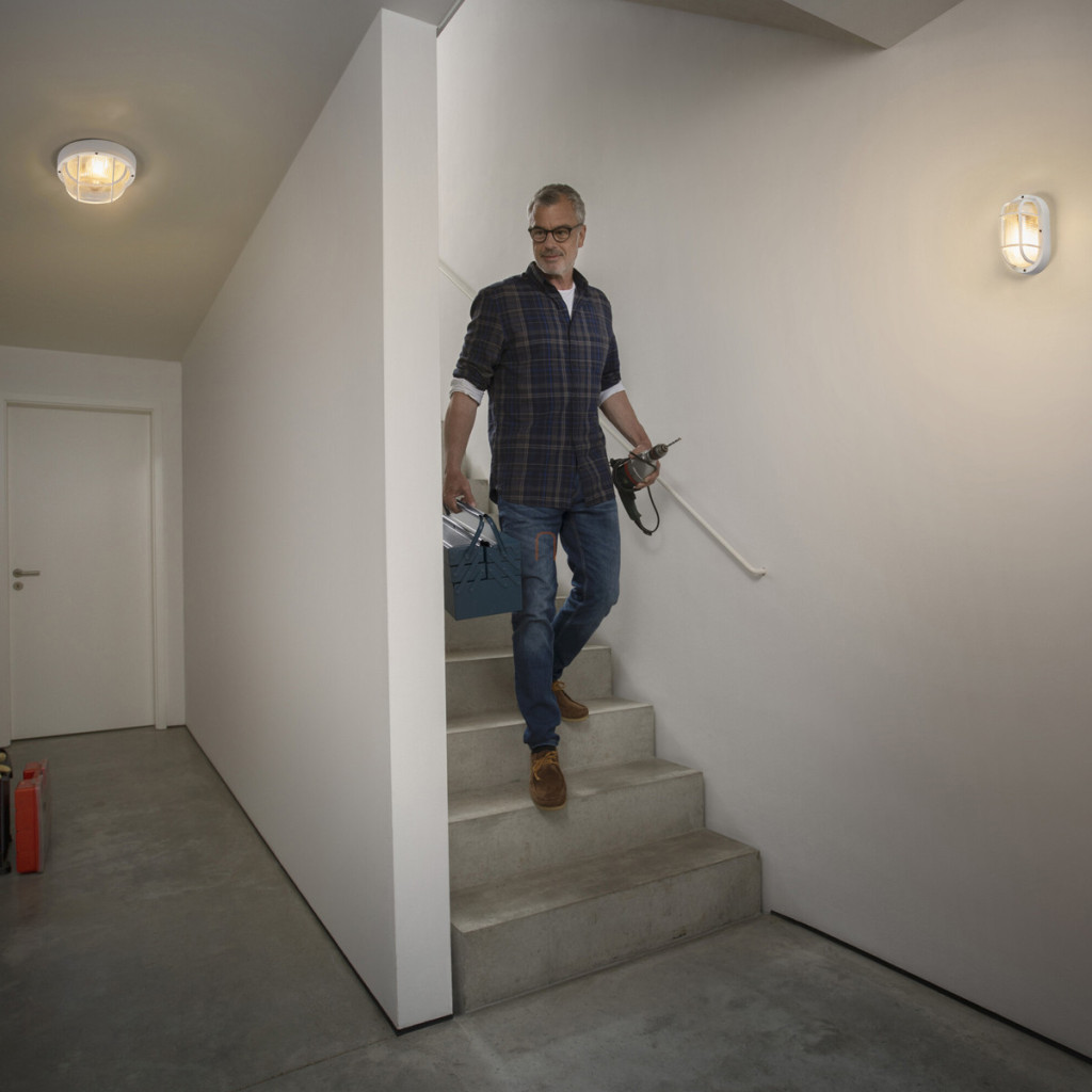Lampă pentru barcă cu grilaj de protecție, albă - Osram Bulkhead Essential Round, cu soclu 1xE27, 220-240 V