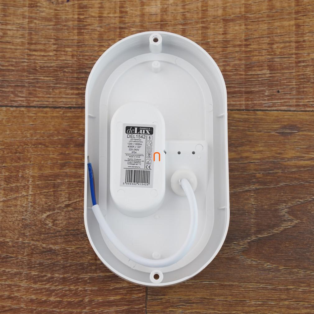 Lampă pentru barcă LED 12W 1000lm 4000K ovală, abajur opal, bază din plastic alb IP54 - deLux DEL1542