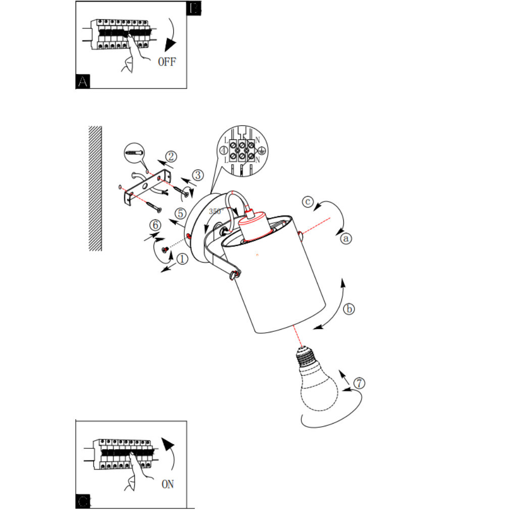 Spotul Villabate Eglo 33645 este un corp de iluminat modern pentru perete, în combinație de culori alb-negru. Corpul de iluminat este fabricat din oțel și materiale textile și are o singură soclu E27 pentru o sursă de lumină înlocuibilă. Produsul nu include o sursă de lumină, astfel încât fluxul luminos, temperatura culorii și puterea depind de becul utilizat. Lampa nu este reglabilă și are protecție IP20, astfel încât este potrivită numai pentru utilizare în interior. Are un diametru de 120 mm și cântărește 0,53 kg. Dimensiunile ambalajului sunt 14 cm lățime, 14 cm lungime și 26 cm înălțime. Lampa este fabricată de EGLO și are codul logistic 33645.