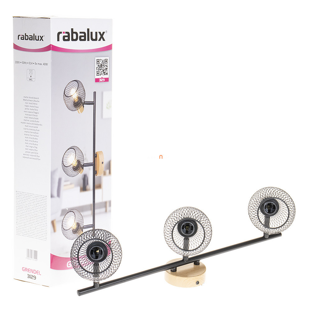 Lampa spot Grendel Rábalux 3129 este un corp de iluminat de tavan în stil vintage, cu abajur negru și elemente din lemn. Lampa este echipată cu trei socluri E14, care pot fi prevăzute cu surse de lumină înlocuibile, permițând reglarea fluxului luminos, a culorii luminii și a temperaturii culorii în funcție de becul selectat. Puterea lămpii depinde, de asemenea, de sursa de lumină utilizată. Lampa nu este reglabilă și are protecție IP20, fiind potrivită pentru utilizare în interior. Dimensiunile produsului: lungime 530 mm, lățime 145 mm, înălțime 175 mm. Lampa cântărește 0,66 kg. Lampa este fabricată din metal și lemn, ceea ce asigură stabilitate și un aspect estetic. Dimensiunile ambalajului sunt: lățime 55 mm, lungime 180 mm, înălțime 110 mm. Produsul nu include o sursă de lumină, care trebuie achiziționată separat.