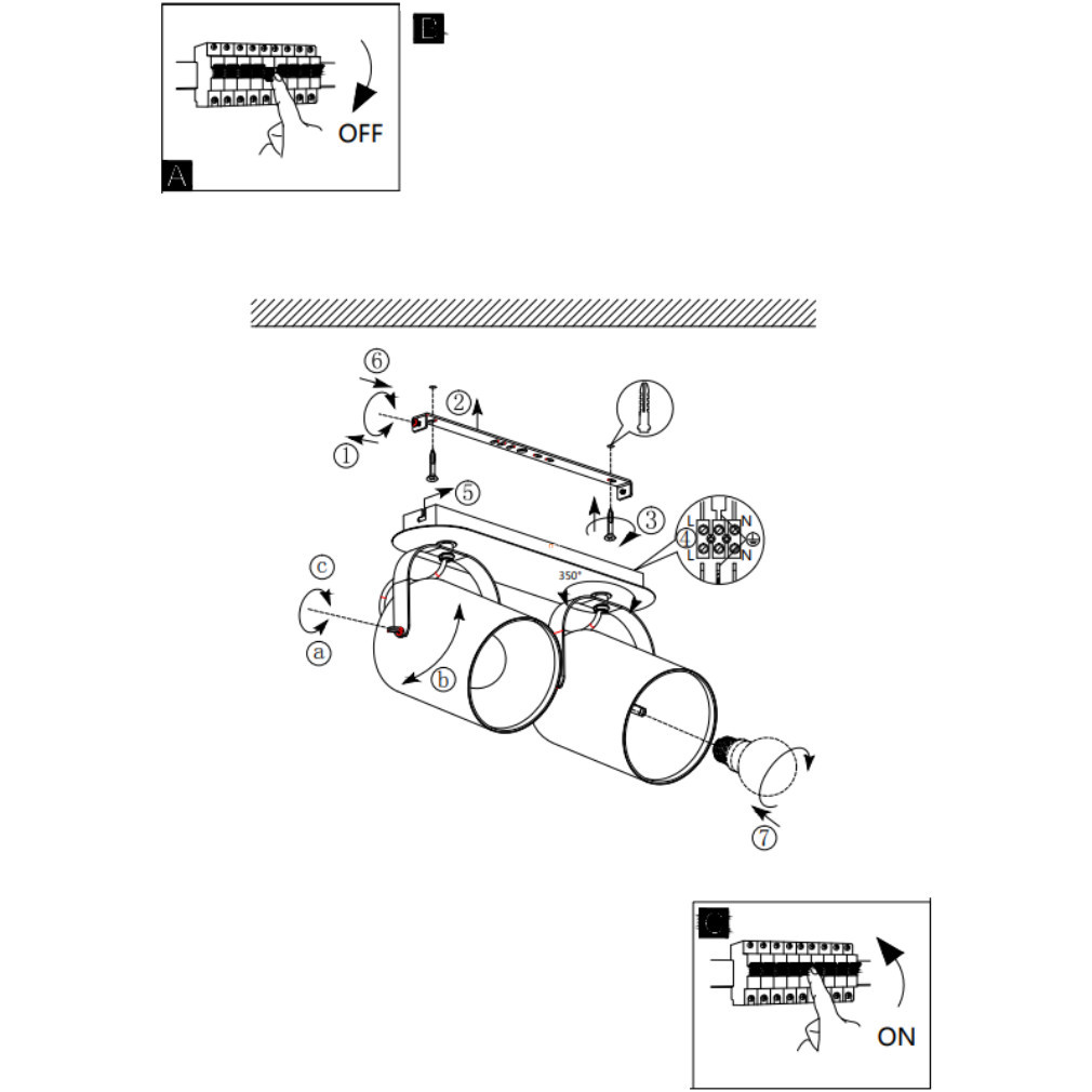Lampă spot cu două socluri, alb-negru - Villabate Eglo 33646