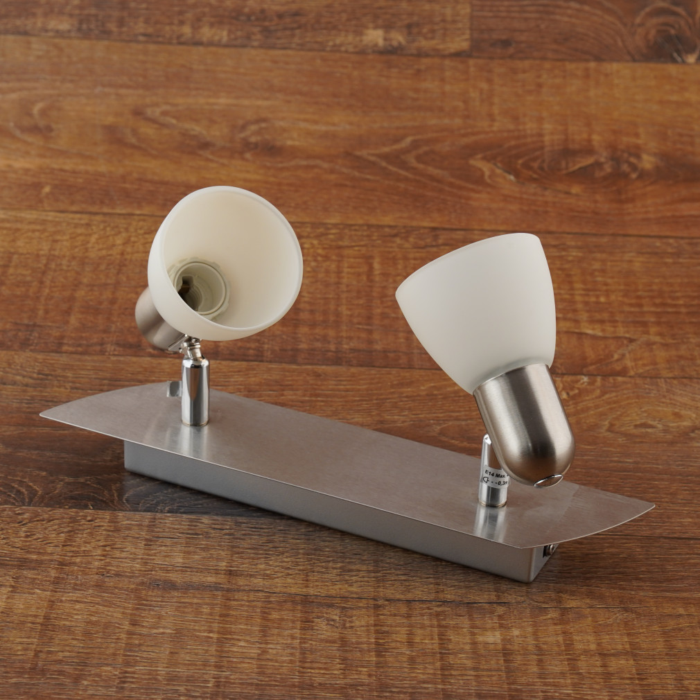 Enea Eglo 90984 este o lampă spot în stil modern, cu două socluri, caracterizată printr-o combinație de culori argintiu-alb și linii curate. Lampa este fabricată din oțel și nichel și este echipată cu două socluri E14, care pot acomoda surse de lumină înlocuibile. Produsul nu include o sursă de lumină, astfel încât fluxul luminos, temperatura culorii și puterea depind de becul utilizat. Corpul de iluminat are o lungime de 300 mm, o lățime de 70 mm și un grad de protecție IP20, fiind potrivit pentru utilizare în interior. Produsul cântărește 0,75 kg și este fabricat de EGLO. Spotul nu este reglabil, deci nu este posibilă controlarea luminozității. Dimensiuni ambalaj: 9 cm lățime, 12 cm lungime, 32 cm înălțime.