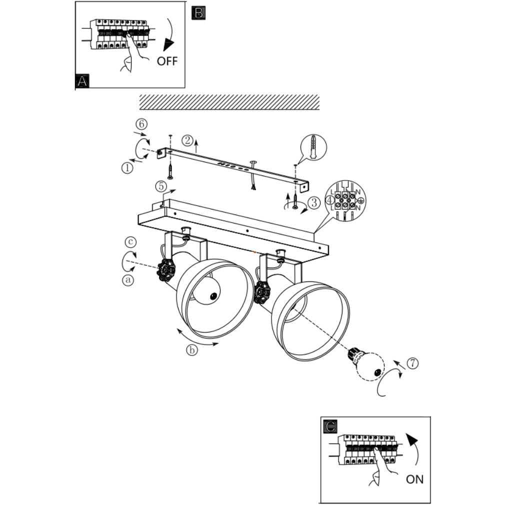Spotul Barnstaple Eglo 49649 are două socluri E27 care pot fi echipate cu surse de lumină înlocuibile. Lampa are un finisaj antic gri și un stil vintage și este realizată dintr-o combinație de oțel și lemn. Produsul are protecție IP20, fiind potrivit pentru utilizare în interior. Lungimea totală a lămpii este de 475 mm, lățimea este de 90 mm, iar greutatea este de 2,3 kg. Sursa de lumină nu este inclusă, iar lampa nu este reglabilă. Produsul este fabricat de EGLO, iar codul său logistic este 49649.