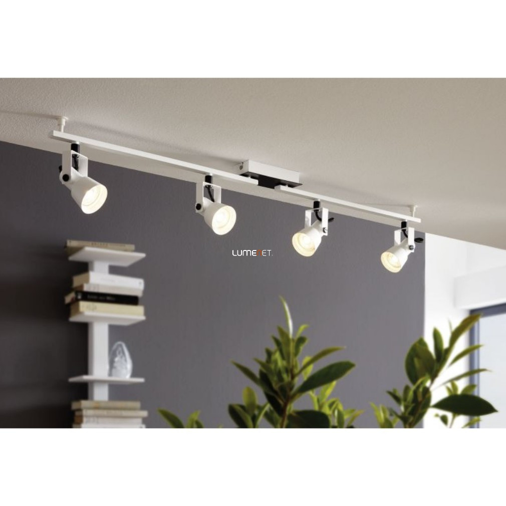 Spotul Trillo Eglo 97374 are patru socluri GU10, fiecare dintre acestea putând fi echipat cu o sursă de lumină înlocuibilă. Corpul de iluminat este fabricat din oțel, iar aspectul său modern este pus în valoare de combinația de culori alb-negru. Lampa de tavan are o lungime totală de 985 mm, o lățime de 70 mm și o greutate de 2 kg. Clasa de protecție IP20 o face potrivită pentru utilizare în interior, iar pachetul include și sursele de lumină necesare. Produsul aparține categoriei de iluminat pentru locuințe și este fabricat de EGLO.