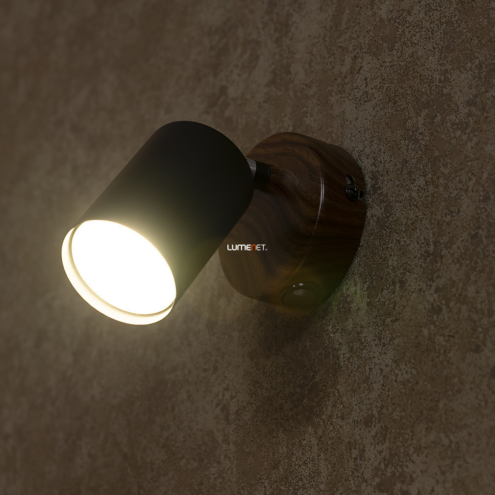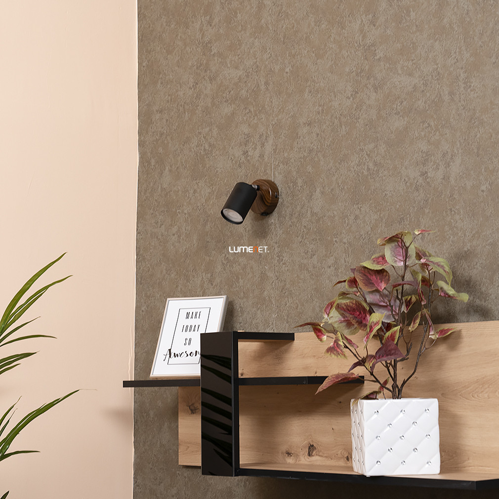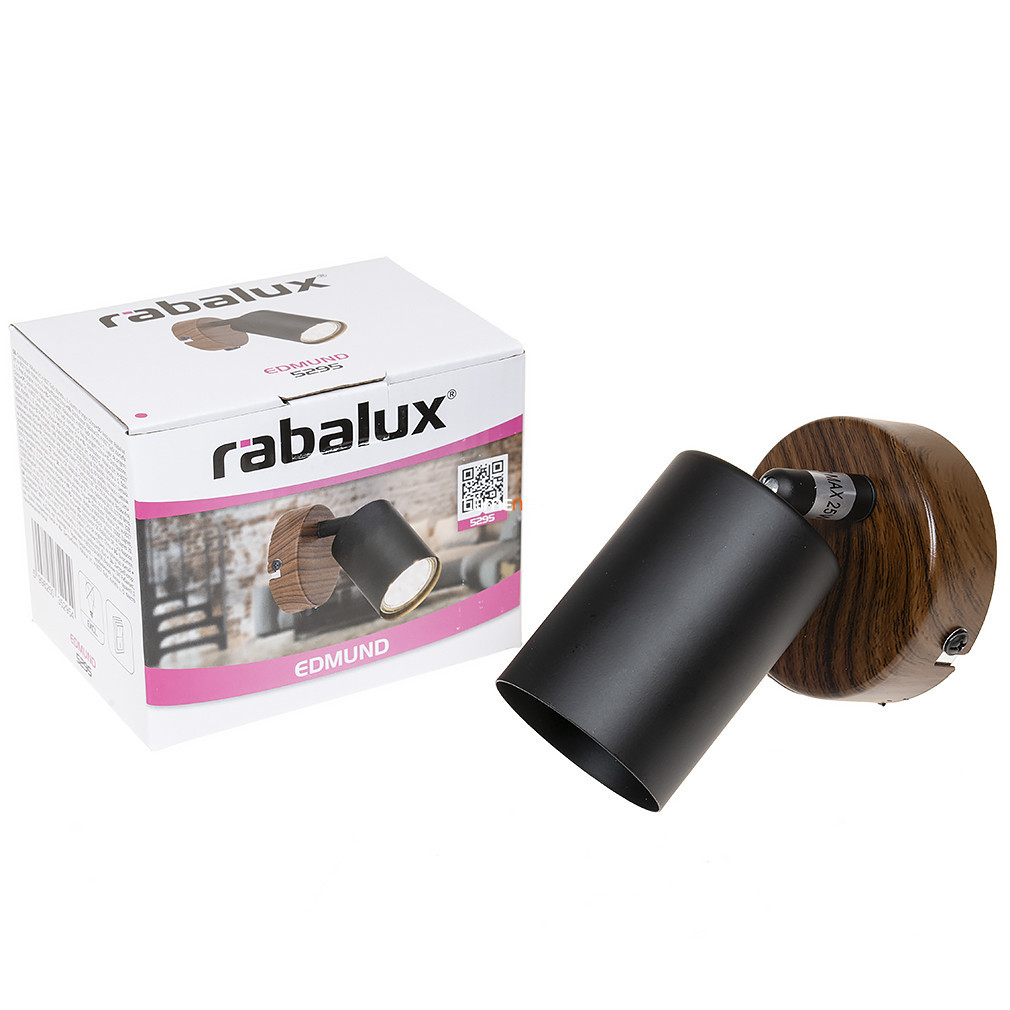 Lampa Spot în culoare neagră, modelul Edmund Rábalux 5295, are un soclu GU10 care poate fi utilizat cu o sursă de lumină înlocuibilă. Lampa este în stil vintage, realizată din metal, cu o combinație de culori lemn și negru. Designul reglabil vă permite să modificați direcția luminii. Produsul este echipat cu un întrerupător, nu este reglabil și are un grad de protecție IP20. Dimensiunile corpului de iluminat sunt: 145 mm lungime, 55 mm lățime, 155 mm înălțime și cântărește 0,24 kg. Dimensiunile ambalajului sunt 12x9x9 cm. Sursa de lumină nu este inclusă în pachet, deci becul GU10 corespunzător trebuie achiziționat separat.