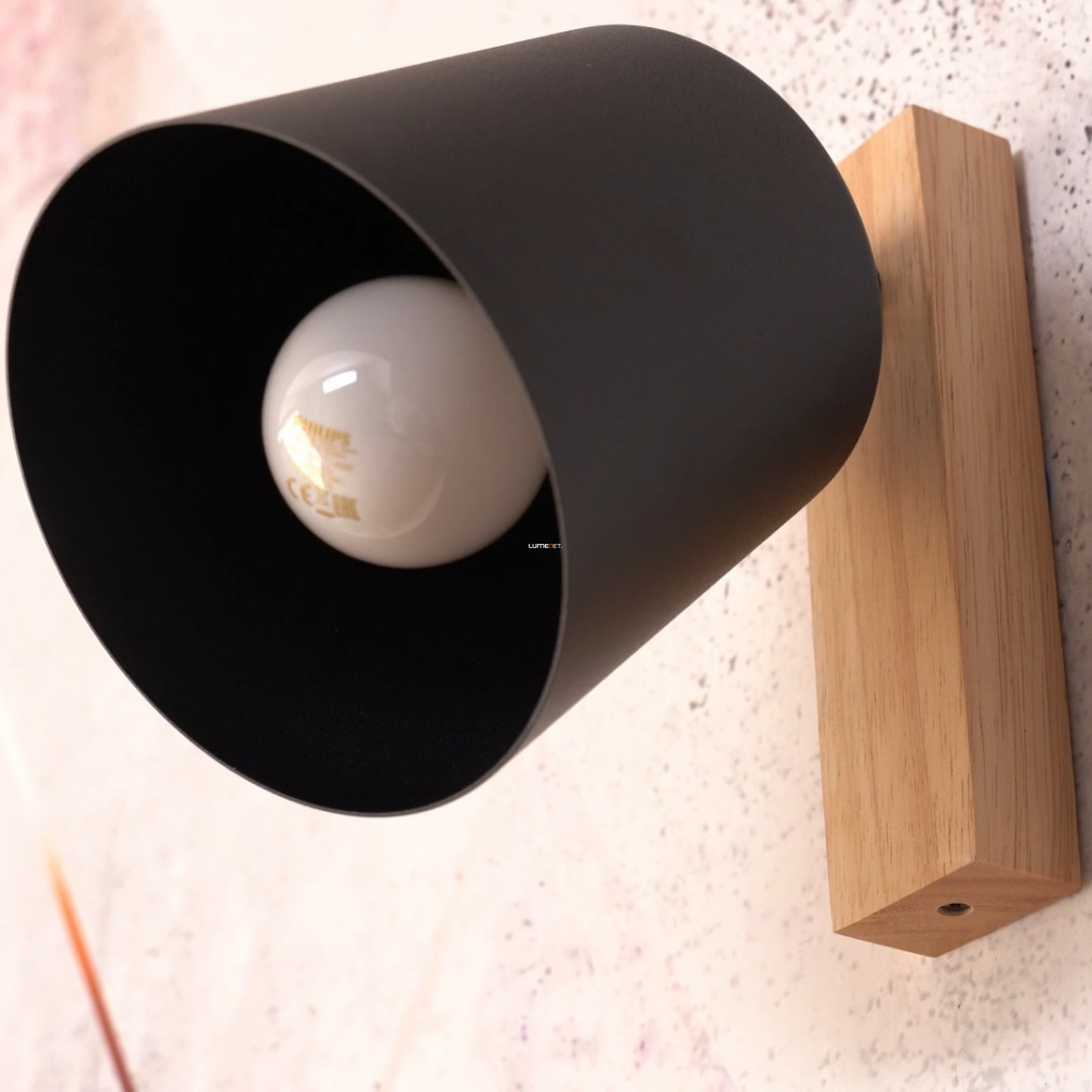 care, cu designul său negru și de culoarea lemnului, este alegerea ideală pentru iluminarea diferitelor încăperi din casa ta. Lampa are
