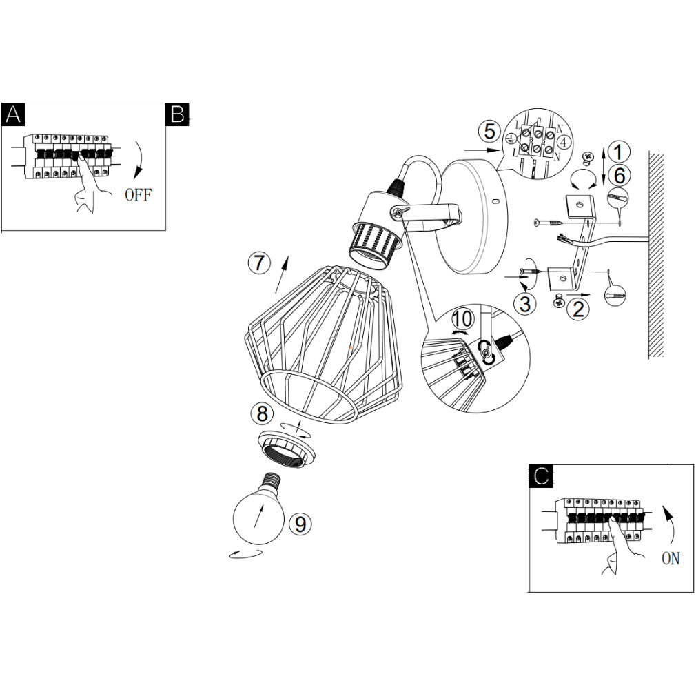 Spotul Tabillano Eglo 98762 este o lampă de perete neagră, în stil vintage, cu soclu E27, potrivită pentru o sursă de lumină înlocuibilă. Lampa este fabricată din oțel și are un grad de protecție IP20, fiind potrivită pentru utilizare în interior. Produsul cântărește 0,84 kg, are un diametru de 110 mm și dimensiuni de ambalare de 17x17x27 cm. Lampa nu include o sursă de lumină; puterea, fluxul luminos, culoarea luminii și temperatura culorii variază în funcție de becul utilizat. Corpul de iluminat nu este reglabil, deci nu există opțiunea de reglare a intensității luminoase. Producătorul este EGLO, iar codul logistic al produsului este 98762.