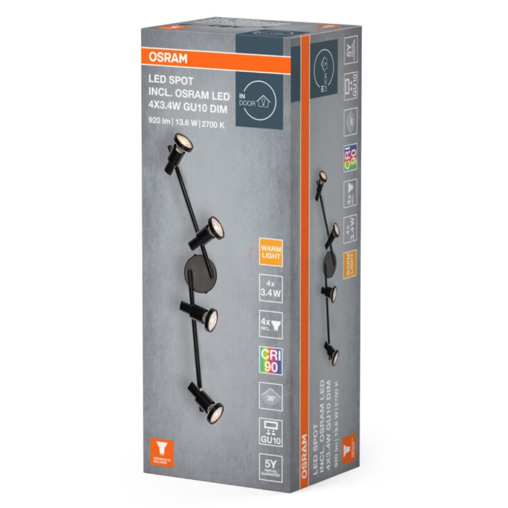 Lampa spot Osram LED GU10 cu sursă de lumină LED, culoare neagră, 4 socluri