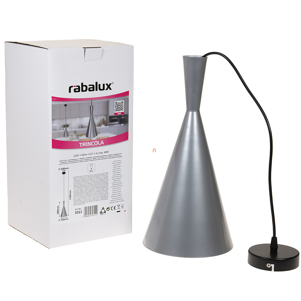 Lampa suspendată Trincola Rábalux 5311 are un design modern, cu un diametru de 19 cm și o înălțime de 110 cm. Corpul lămpii este de culoare neagră și argintie și este fabricat din metal, ceea ce asigură durabilitate și un aspect elegant. Soclul E27 este potrivit pentru o sursă de lumină înlocuibilă, care nu este inclusă. Lampa nu este reglabilă și are protecție IP20, deci este recomandată pentru utilizare în interior. Produsul cântărește 0,5 kg, iar dimensiunile ambalajului sunt 20x20x41 cm. Trincola Rábalux 5311 este soluția ideală pentru proiectele de iluminat casnic în care designul modern și funcționalitatea sunt aspecte cheie.