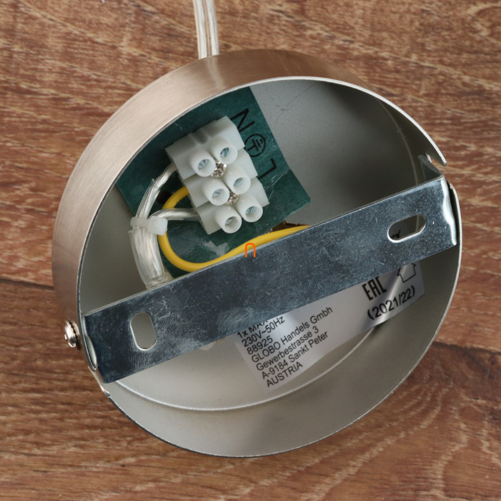 Lungimea suspensiei poate fi scurtată folosind șurubul de pe elementul de acoperire al tavanului, dacă utilizatorul dorește să atârne lampa la o lungime mai mică de 110 cm în cameră.
