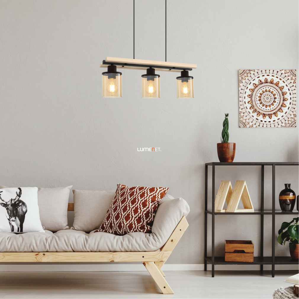 Lampa suspendată Niylah Rábalux 72083 are trei socluri E27, care permit utilizarea diverselor surse de lumină înlocuibile. Abajurul este realizat dintr-o combinație de metal, lemn și sticlă și este disponibil în culorile negru și chihlimbar. Produsul are o înălțime de 1200 mm, o lungime de 550 mm și o lățime de 95 mm, cu o greutate totală de 2,05 kg. Lampa are un grad de protecție IP20, fiind potrivită pentru utilizare în interior. Pachetul nu include o sursă de lumină; puterea maximă și temperatura culorii depind de sursa de lumină utilizată. Soclul 3xE27 asigură o distribuție versatilă a luminii, iar materialele de înaltă calitate garantează o durată lungă de viață.