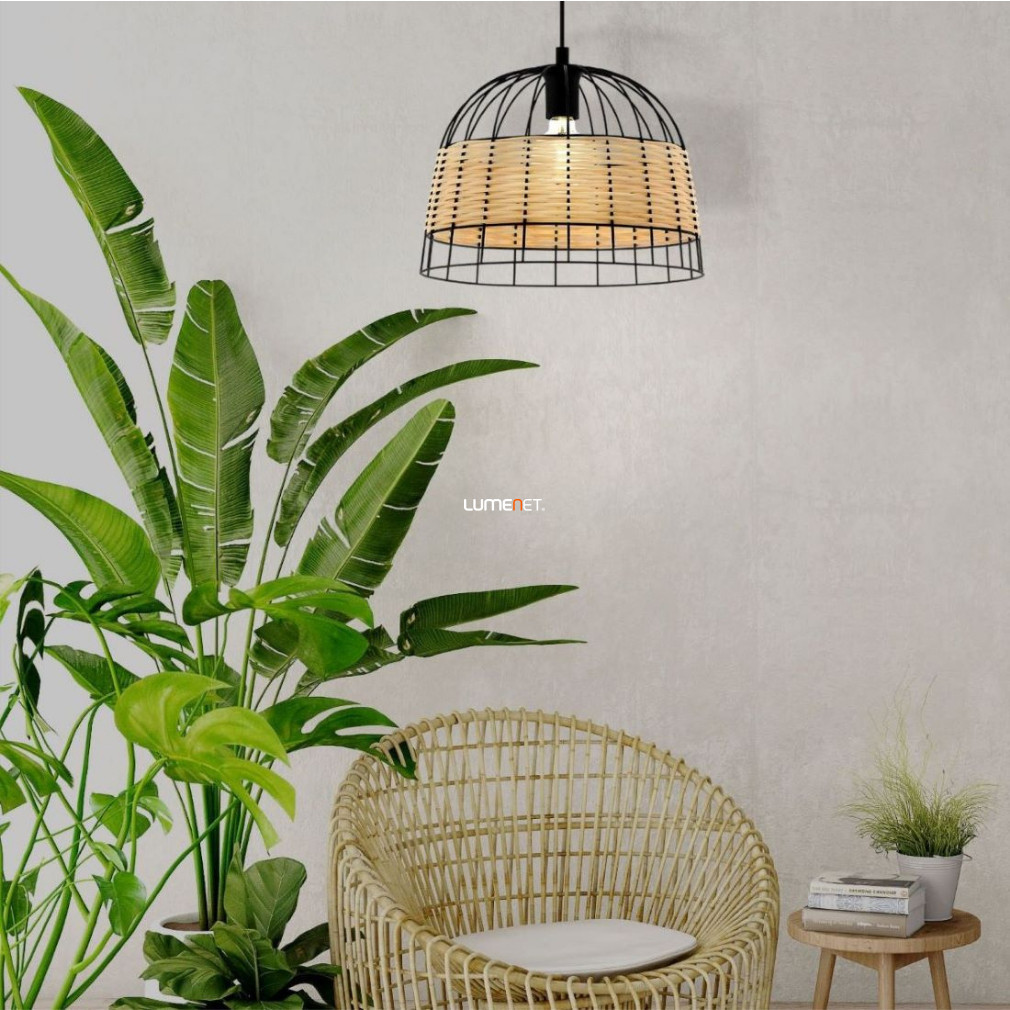 Lampă suspendată, 37 cm, negru și culoarea lemnului - Anwick Eglo 43311