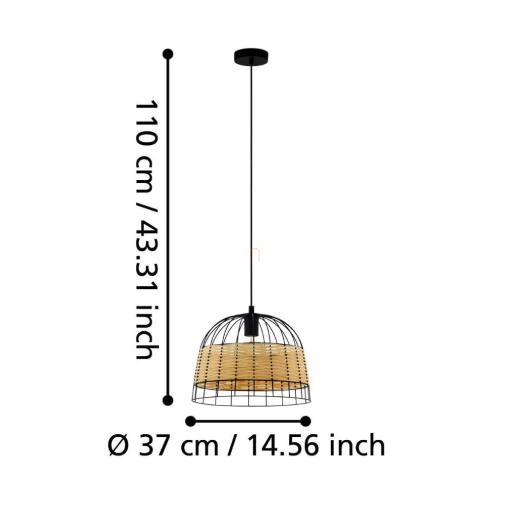 Cu stilul său modern și diametrul de 37 cm, lampa suspendată Anwick Eglo 43311 este alegerea ideală pentru soluții de iluminat pentru locuințe. Lampa este fabricată din oțel și lemn, într-o combinație de culori negru și lemn, care îi conferă un aspect curat. Are o soclu E27, care permite utilizarea surselor de lumină înlocuibile, astfel încât fluxul luminos, culoarea luminii, puterea și temperatura culorii pot fi ajustate în funcție de becul ales. Produsul nu este reglabil și nu include o sursă de lumină. Lampa are un grad de protecție IP20, fiind potrivită pentru utilizare în interior. Produsul cântărește 1,5 kg, are o înălțime de 1100 mm și un diametru de 370 mm. Dimensiuni ambalaj: 38x38x29 cm. Fabricat de EGLO.