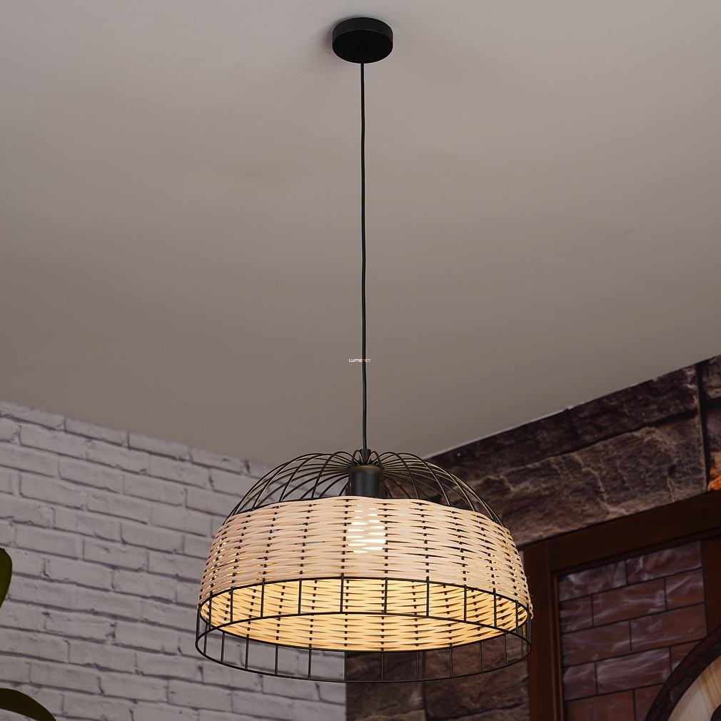Lampă suspendată, 50 cm, negru și culoarea lemnului - Anwick Eglo 43312