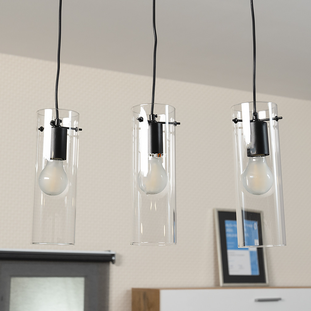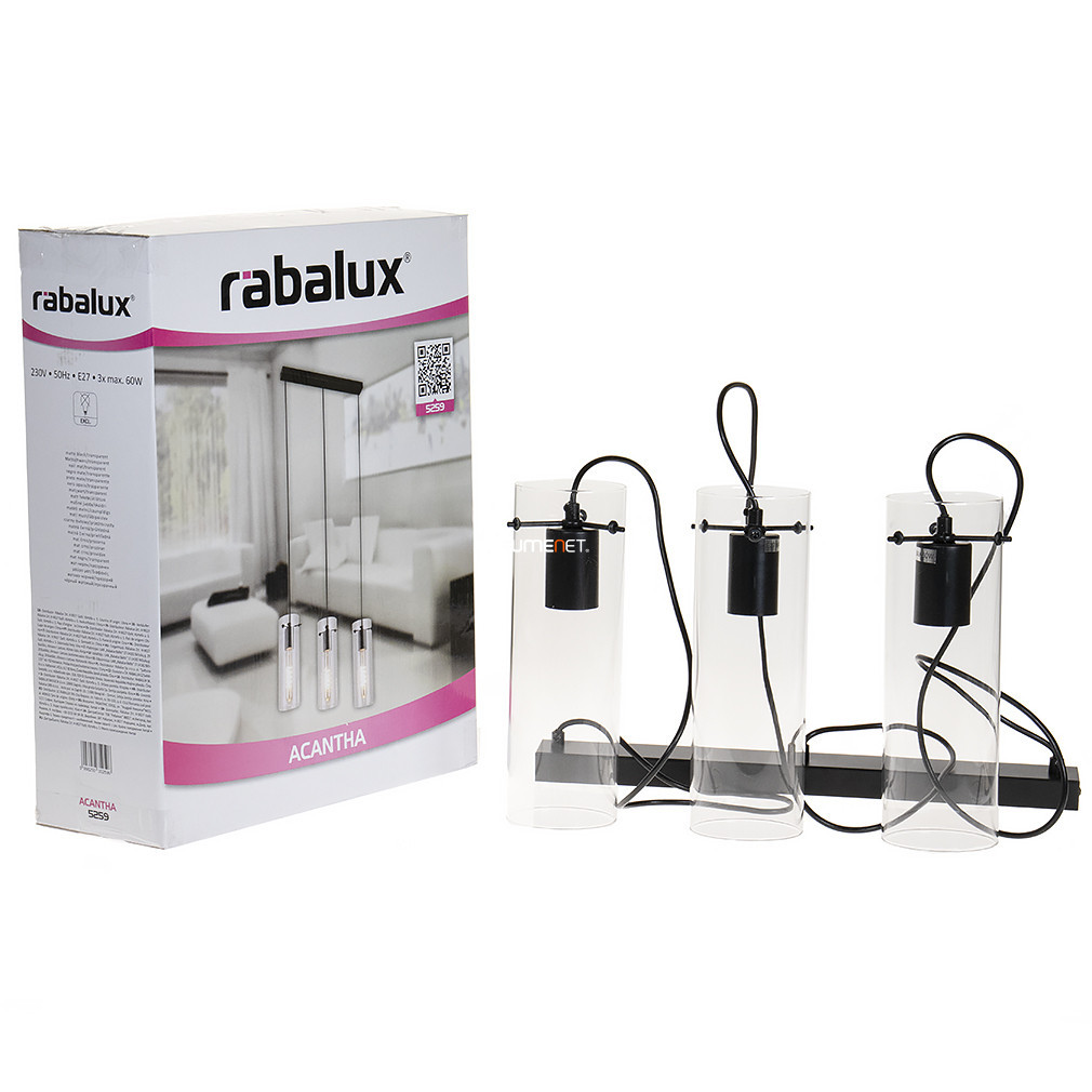Lampa suspendată Acantha Rábalux 5259 are un design modern și o manoperă de înaltă calitate, fiind fabricată de Rábalux. Corpul de iluminat este echipat cu trei socluri E27, astfel încât utilizează surse de lumină înlocuibile, al căror flux luminos, temperatură de culoare și putere pot fi selectate în funcție de necesități. Materialele principale ale lămpii sunt metalul și sticla, într-o combinație de culori negru și transparent. Produsul are o lungime de 500 mm, o lățime de 90 mm, o înălțime de 1200 mm și o greutate de 1,94 kg. Are un grad de protecție IP20, ceea ce îl face potrivit pentru utilizare în interior. Dimensiunile ambalajului sunt 36 cm lățime, 14 cm lungime și 46 cm înălțime. Sursele de lumină nu sunt incluse în pachet și pot fi achiziționate separat. Liniile curate și abajurul din sticlă al lămpii Acantha asigură un aspect elegant în orice spațiu de locuit.