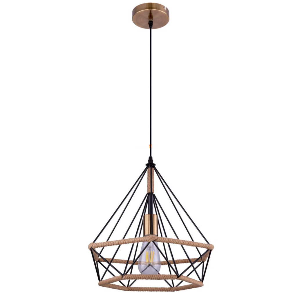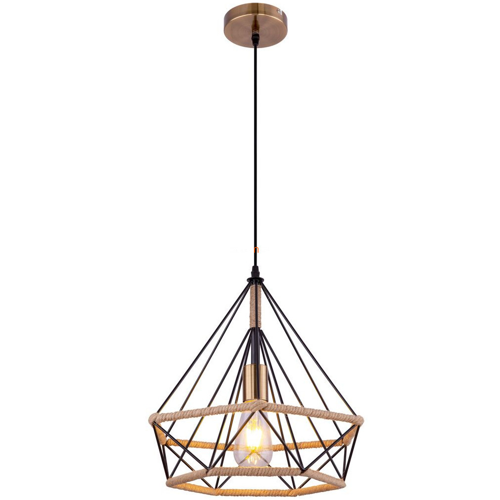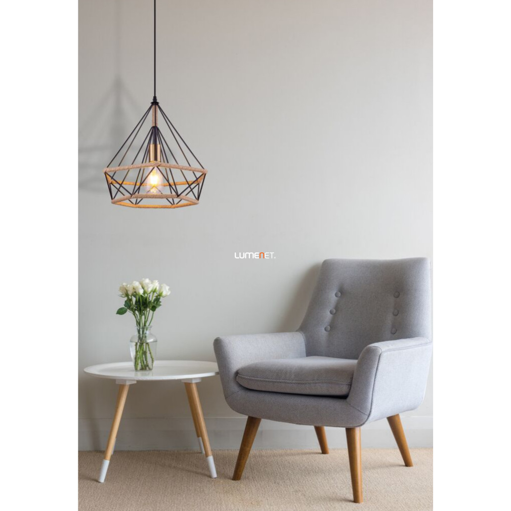 Lampă suspendată - abajur negru cu cablu din cânepă, 38 cm - Ulleu Globo 69029