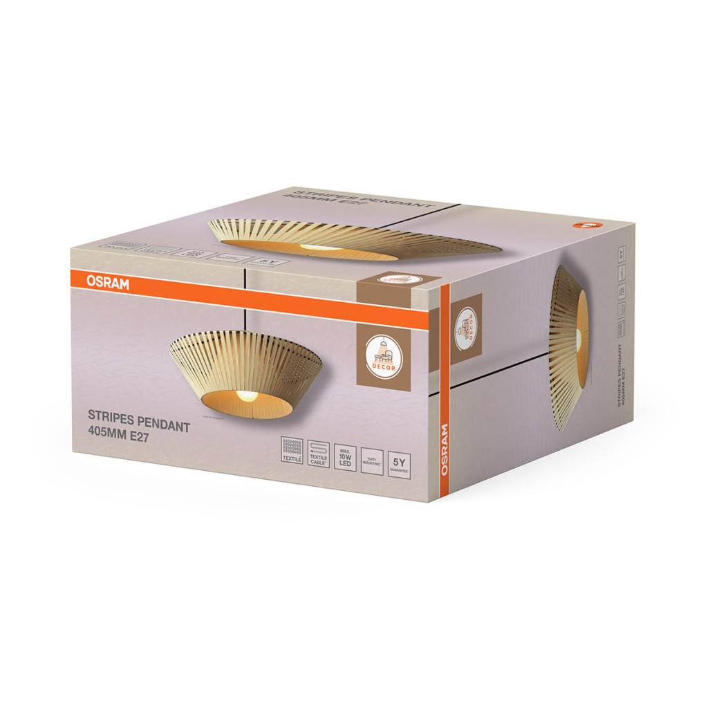 Lampă suspendată, abajur tip panglică, bej - Osram Decor Stripes, cu soclu 1xE27, 220-240 V