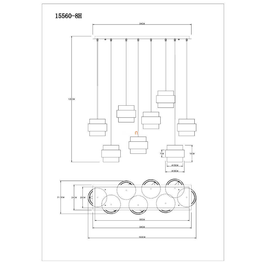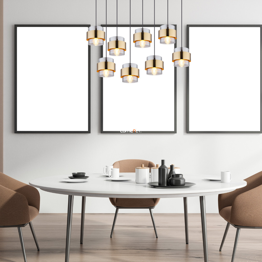 Lampa suspendată Milley Globo 15560-8H este proiectată într-un stil modern, combinând metalul negru și de culoarea alamei cu sticla fumurie. Lampa are opt socluri E27 care pot fi echipate cu surse de lumină înlocuibile, permițându-vă să alegeți liber fluxul luminos, temperatura culorii și culoarea luminii. Lampa nu este reglabilă și are un grad de protecție IP20, fiind potrivită pentru utilizare în interior. Produsul are o lungime de 1030 mm, o lățime de 315 mm, o înălțime de 1200 mm și o greutate de 12,68 kg. Dimensiunile ambalajului sunt 1020 mm lungime, 430 mm lățime și 320 mm înălțime. Corp de iluminat nu include o sursă de lumină și este fabricat de Globo.
