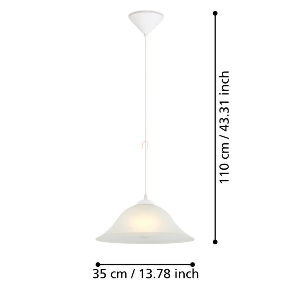 Lampa suspendată albă Albany Eglo 90978 este o soluție modernă de iluminat pentru locuințe, cu o greutate de 1,51 kg și fabricată din plastic. Lampa are un soclu E27 și este compatibilă cu surse de lumină înlocuibile, dar sursa de lumină nu este inclusă. Lampa nu este reglabilă, iar temperatura culorii și fluxul luminos depind de becul utilizat. Are un grad de protecție IP20, fiind potrivită pentru utilizare în interior. Diametrul său este de 350 mm, înălțimea este de 1100 mm, iar dimensiunile ambalajului sunt de 14 cm lățime, 36 cm lungime și 35 cm înălțime. Produsul este fabricat de EGLO, codul său logistic fiind 90978.