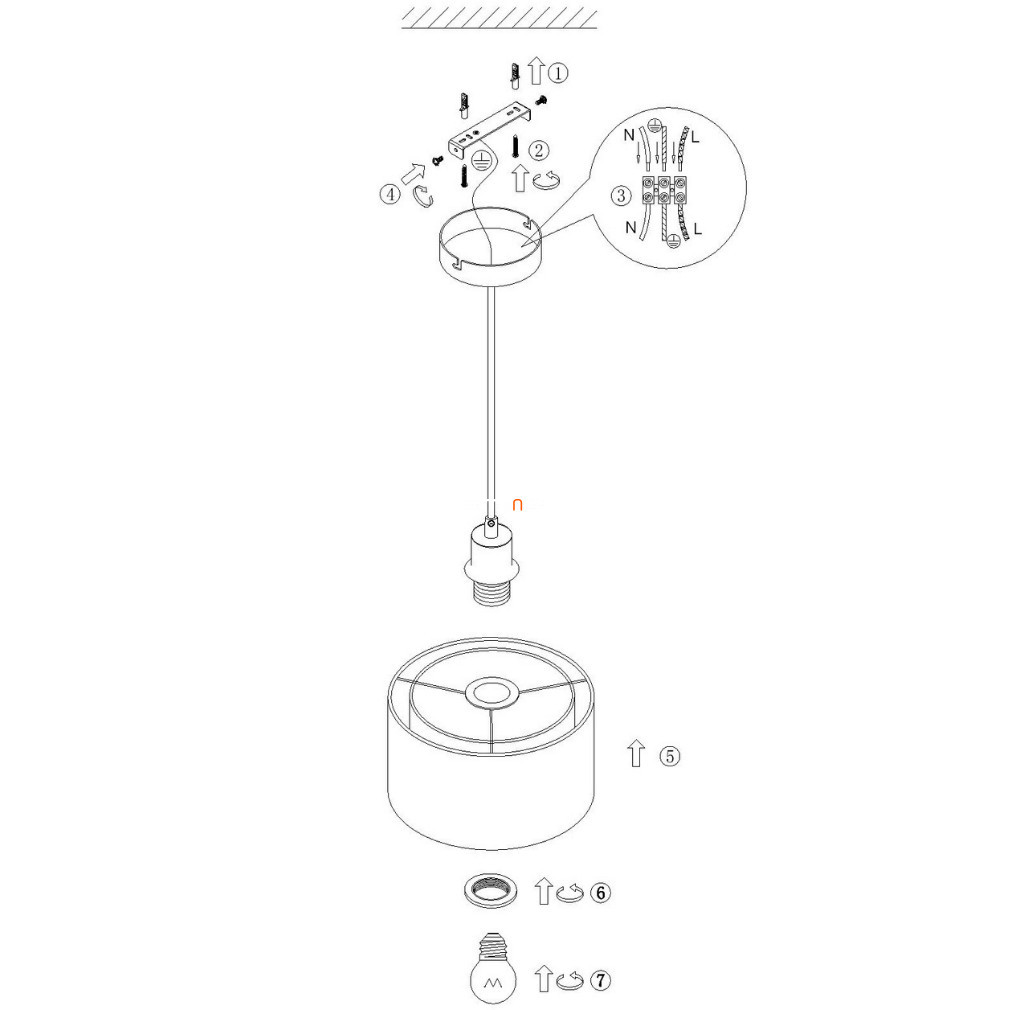 Majoritatea lămpilor montate pe tavan sunt echipate din fabrică cu un cablu de 110 cm și un element de acoperire (cunoscut sub numele de „rozeta de tavan”) care ascunde conexiunea la rețeaua electrică și montarea. Lungimea suspensiei poate fi scurtată folosind șurubul de pe elementul de acoperire al tavanului, dacă utilizatorul dorește să atârne lampa la o lungime mai mică de 110 cm în cameră. Cablul în exces poate fi ascuns sub elementul de acoperire al tavanului (fără reinstalare) sau, dacă nu există suficient spațiu, poate fi tăiat și reconectat la blocul terminal într-un mod estetic plăcut. Acest lucru trebuie făcut cu alimentarea deconectată sau cu ajutorul unui electrician profesionist.