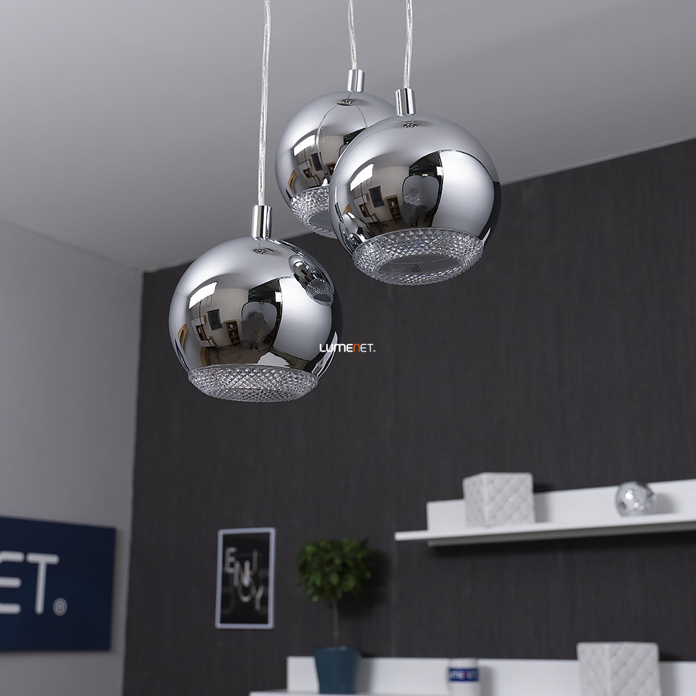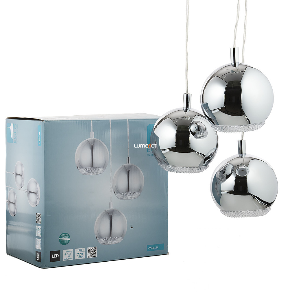 Lampa suspendată cu finisaj cromat (Conessa Eglo 95913) este o soluție modernă de iluminat cu trei socluri GU10. Corpul lămpii este fabricat din oțel și materiale plastice, iar suprafața sa este caracterizată de o culoare cromată. Înălțimea totală a lămpii este de 1100 mm, iar diametrul său este de 290 mm. Produsul include o sursă de lumină înlocuibilă, astfel încât fluxul luminos, culoarea luminii, puterea și temperatura culorii pot fi reglate în funcție de necesități. Lampa nu este reglabilă și are un grad de protecție IP20, fiind potrivită pentru utilizare în interior. Dimensiunile ambalajului sunt de 22 cm lățime, 32 cm lungime și 32 cm înălțime, iar produsul cântărește 3 kg. Producătorul este EGLO.