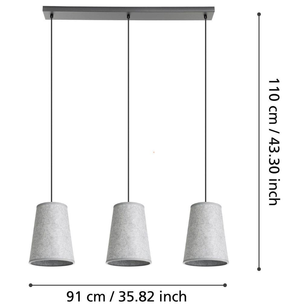 Lampa suspendată Alsager Eglo 43985 are trei socluri E27, ceea ce permite înlocuirea ușoară a surselor de lumină și personalizarea iluminatului. Lampa este fabricată din oțel și țesătură într-o combinație de negru și gri, conferindu-i un aspect modern în orice spațiu de locuit. Dimensiunile produsului sunt: lungime 910 mm, lățime 210 mm, înălțime 1100 mm, greutate 1,97 kg. Lampa are protecție IP20, fiind potrivită pentru utilizare în interior. Dimensiunile ambalajului sunt 78x26x23 cm. Produsul nu include o sursă de lumină, astfel încât becurile E27 potrivite pot fi selectate separat. Producătorul este EGLO, iar codul logistic al produsului este 43985.