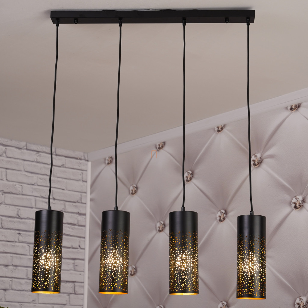 Lampa suspendată Crocky Globo 21005-4H are patru socluri E27 care pot fi echipate cu surse de lumină înlocuibile, permițând reglarea fluxului luminos, a temperaturii culorii și a puterii în funcție de necesități. Materialul principal al lămpii este metalul, cu un finisaj negru mat care îi conferă un aspect modern și curat. Efectul de cer înstelat al abajururilor creează efecte de iluminare unice. Produsul are protecție IP20, fiind potrivit pentru utilizare în interior. Lungimea totală a lămpii este de 800 mm, lățimea este de 100 mm, înălțimea este de 1500 mm, iar greutatea este de 2,7 kg. Pachetul nu include o sursă de lumină. Codul logistic al produsului este 21005-4H, iar acesta este fabricat de Globo.