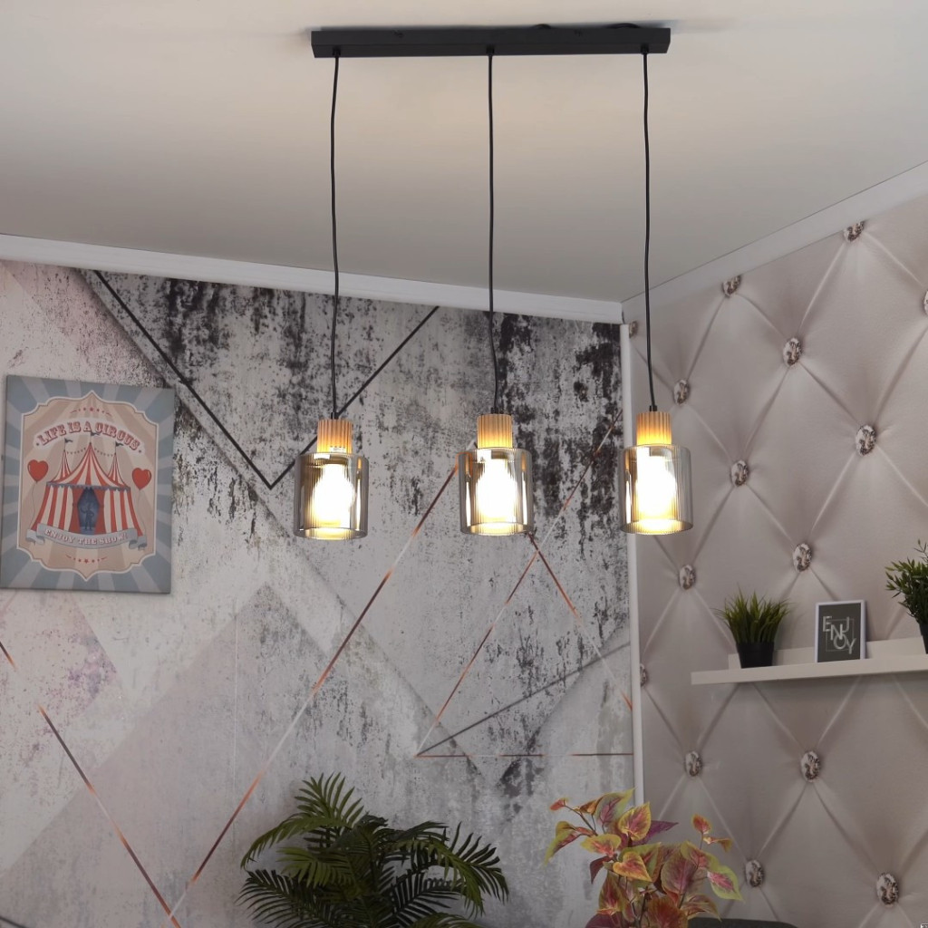 Lampă suspendată cu abajur din sticlă, 3 socluri - Aleidis Globo 15768-3