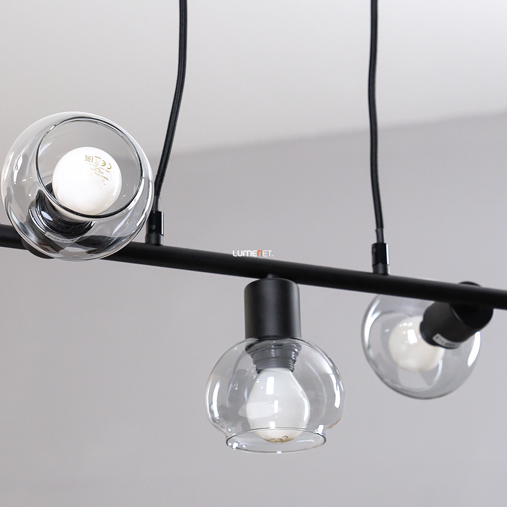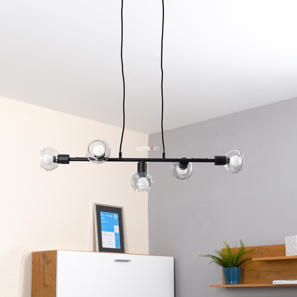 Lampa suspendată Sullivan Rábalux 3297 are un stil modern, un abajur din sticlă cu 4 căi și cinci socluri E14. Lampa este disponibilă într-o combinație de culori negru și fum și este fabricată din metal și sticlă, asigurând durabilitate și un aspect elegant. Dimensiunile produsului sunt: lungime 830 mm, lățime 250 mm, înălțime 1200 mm. Lampa poate fi utilizată cu o sursă de lumină înlocuibilă, iar fluxul luminos, culoarea luminii, puterea și temperatura culorii variază în funcție de tipul de bec instalat. Produsul nu include o sursă de lumină și nu poate fi reglat. Gradul său de protecție este IP20, ceea ce îl face potrivit pentru utilizare în interior. Sullivan Rábalux 3297 are un cod logistic de 3297 și cântărește 1,16 kg. Dimensiunile ambalajului sunt: 74 cm lungime, 20 cm lățime, 13 cm înălțime. Producătorul este Rábalux.