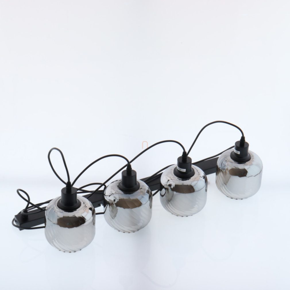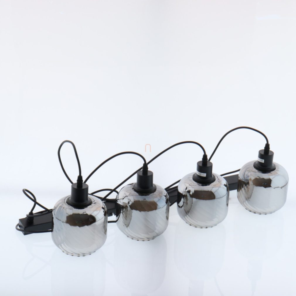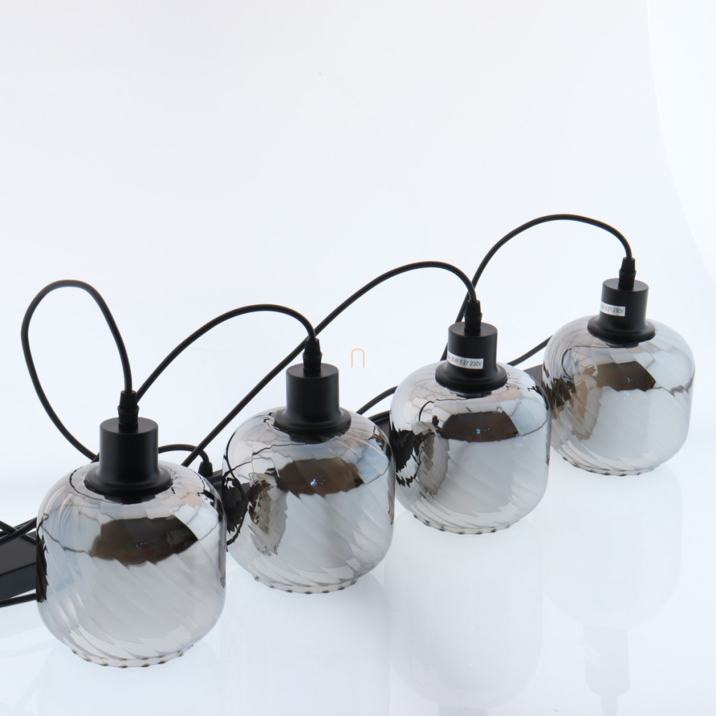 Lampă suspendată cu abajur din sticlă striată, de culoare fumurie, cu 4 socluri - Xia Globo 15754-4H