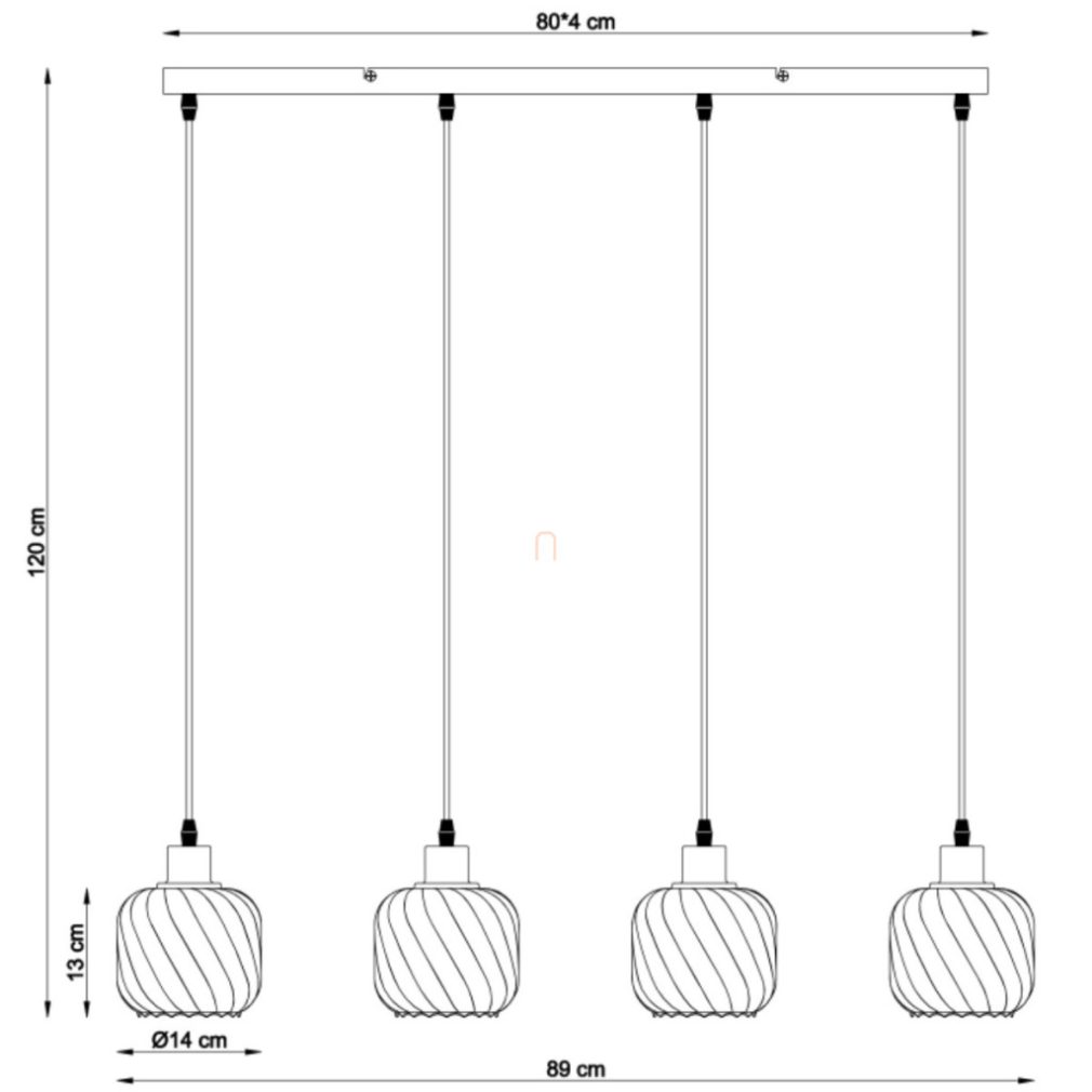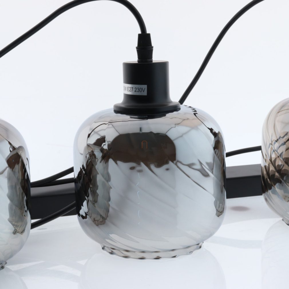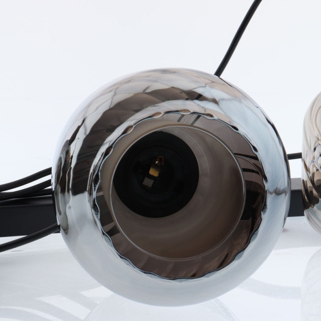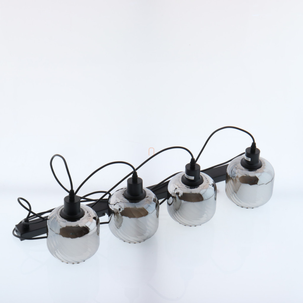 Lampă suspendată cu abajur din sticlă striată, de culoare fumurie, cu 4 socluri - Xia Globo 15754-4H