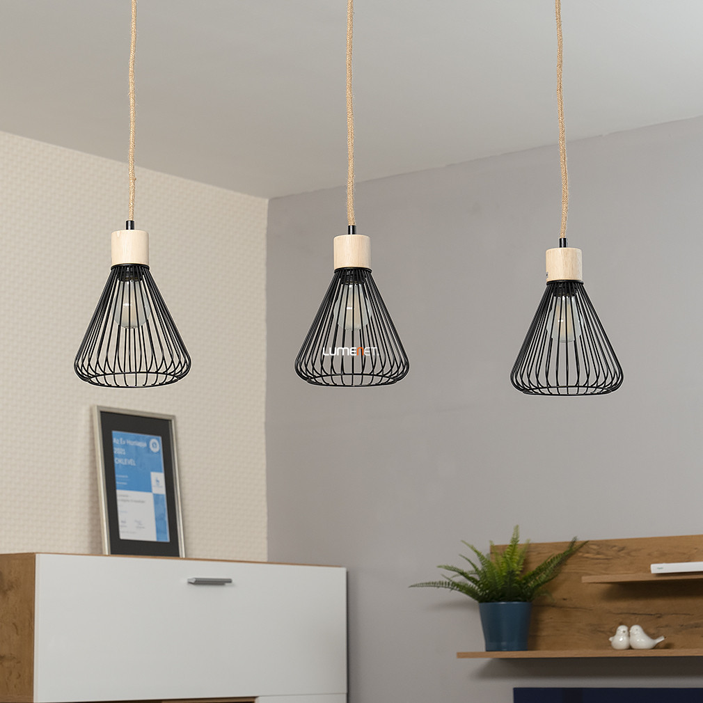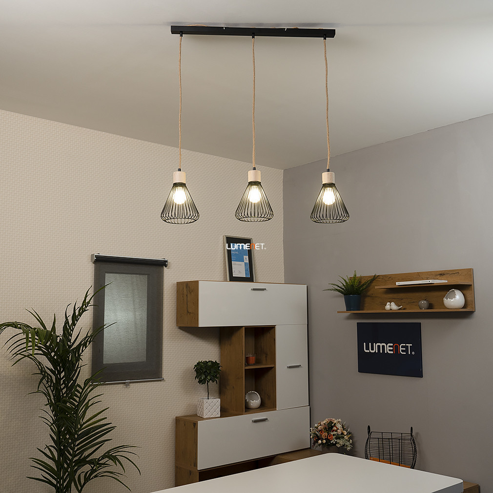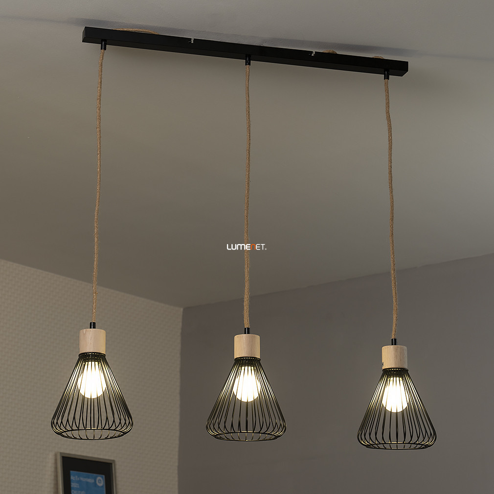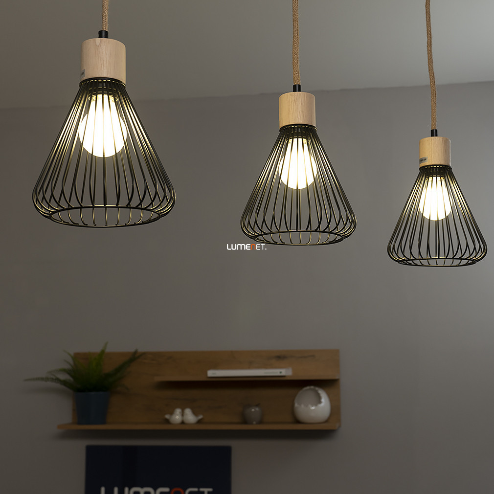 Lampă suspendată cu cablu din cânepă și abajur din grilaj, 3 socluri - Farfalle Rábalux 3149