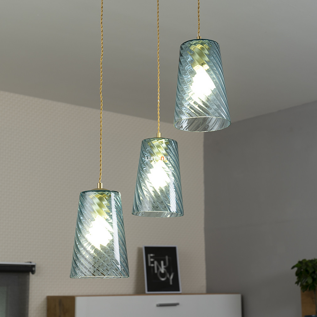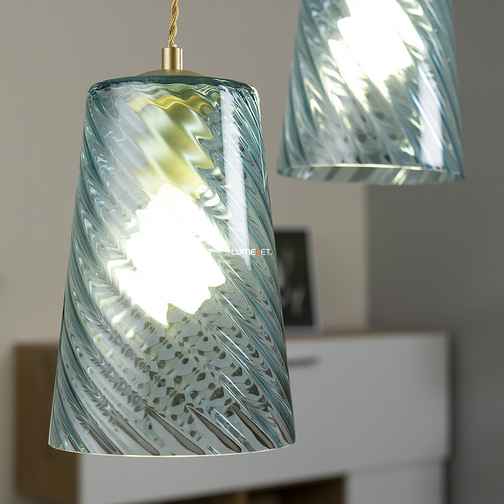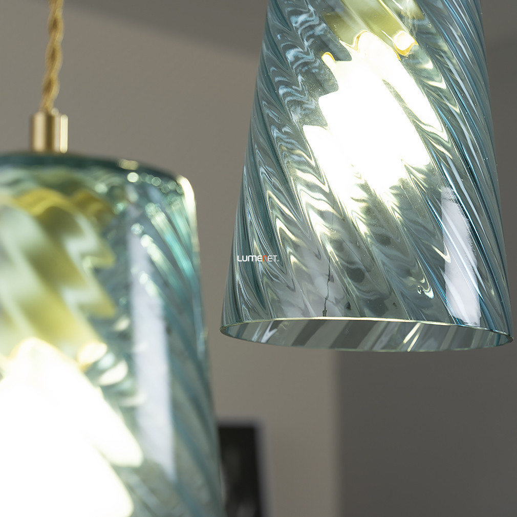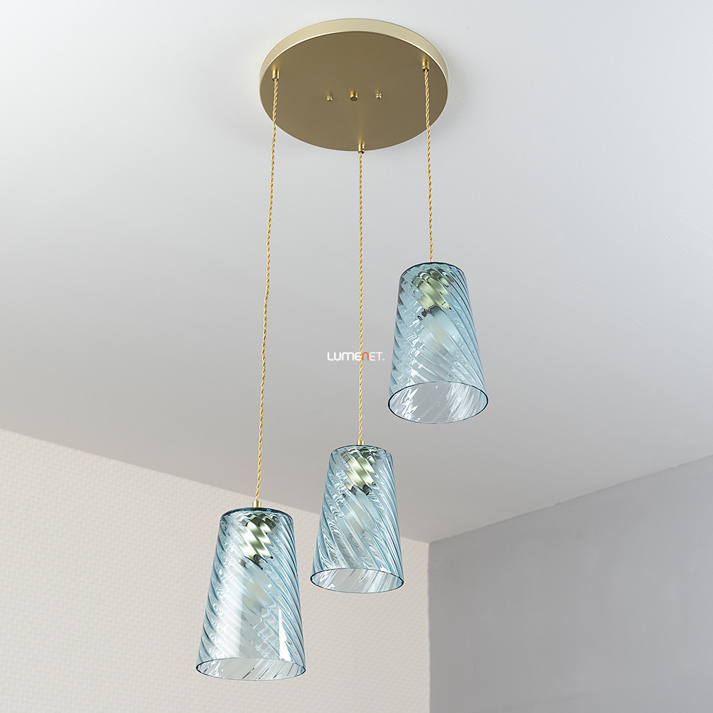 Lampă suspendată cu cablu textil auriu și abajur din sticlă albastră - Azurine Rábalux 5227