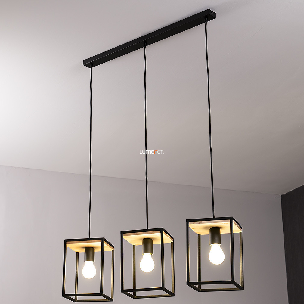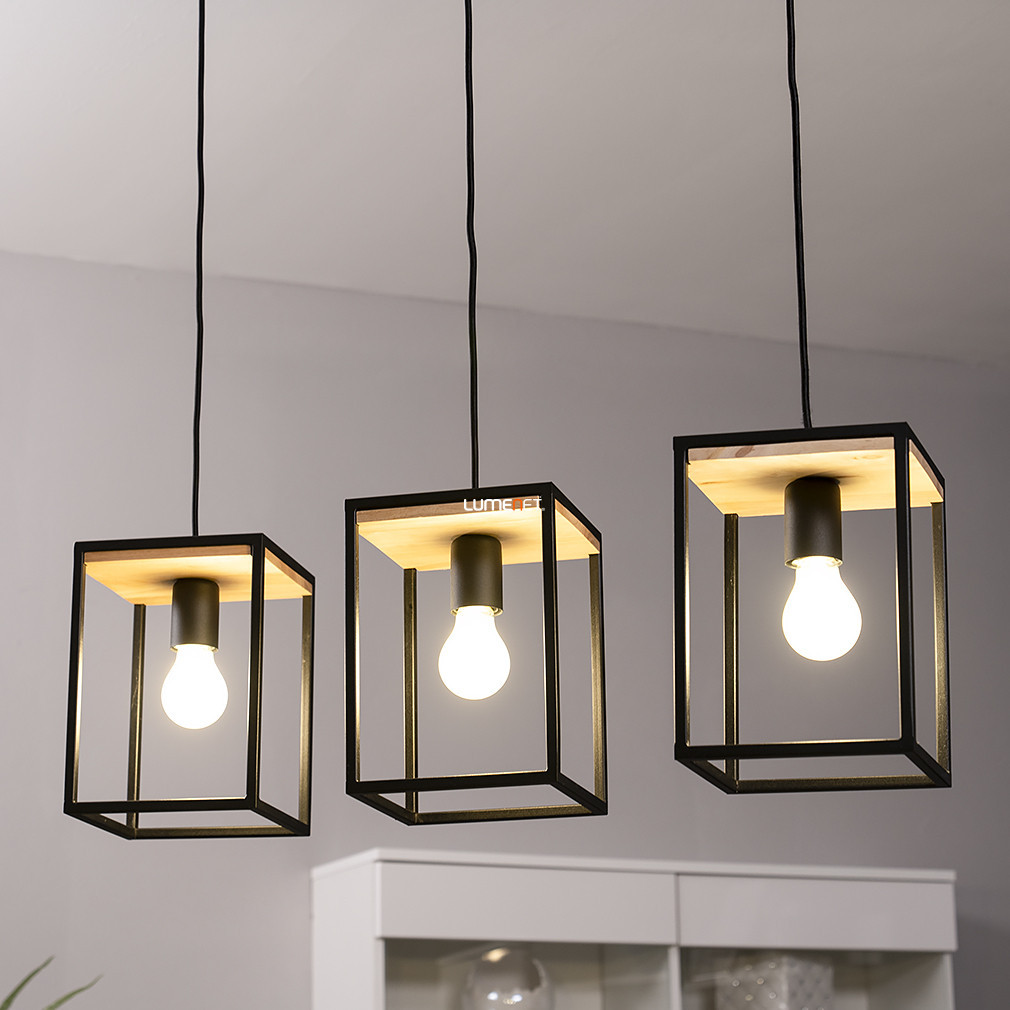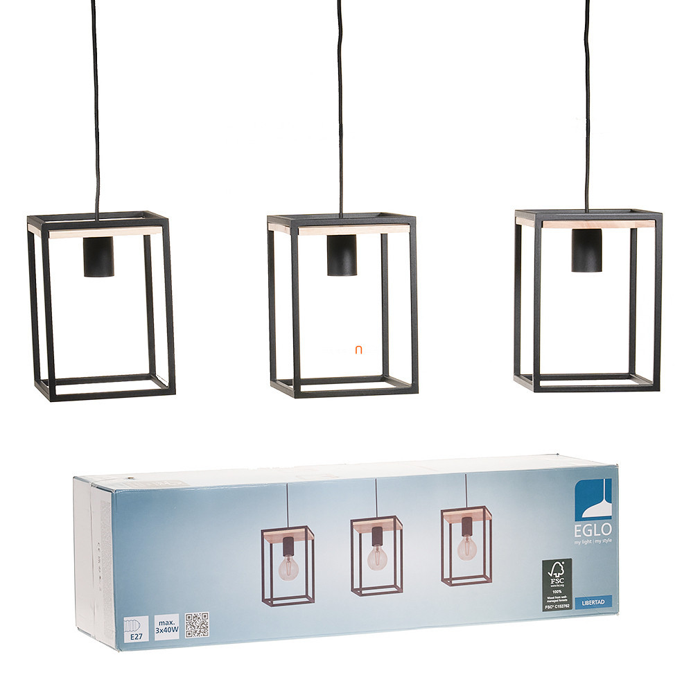Lampă suspendată cu cadru cub negru, trei socluri - Libertad Eglo 99855
