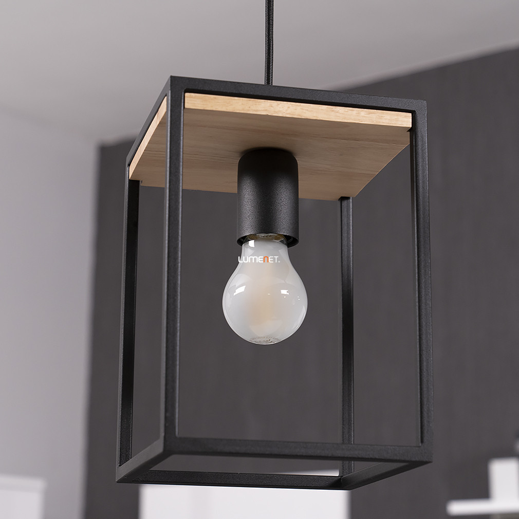 Lampă suspendată, negru și culoarea lemnului - Libertad Eglo 99795