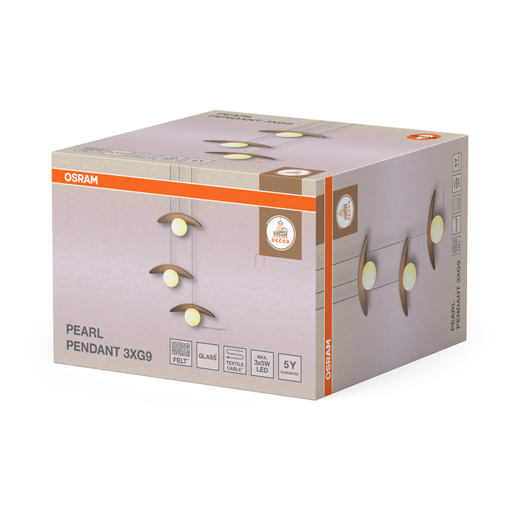 Lampă suspendată cu capac din țesătură - Osram Decor Pearl, cu soclu 3xG9, 220-240 V