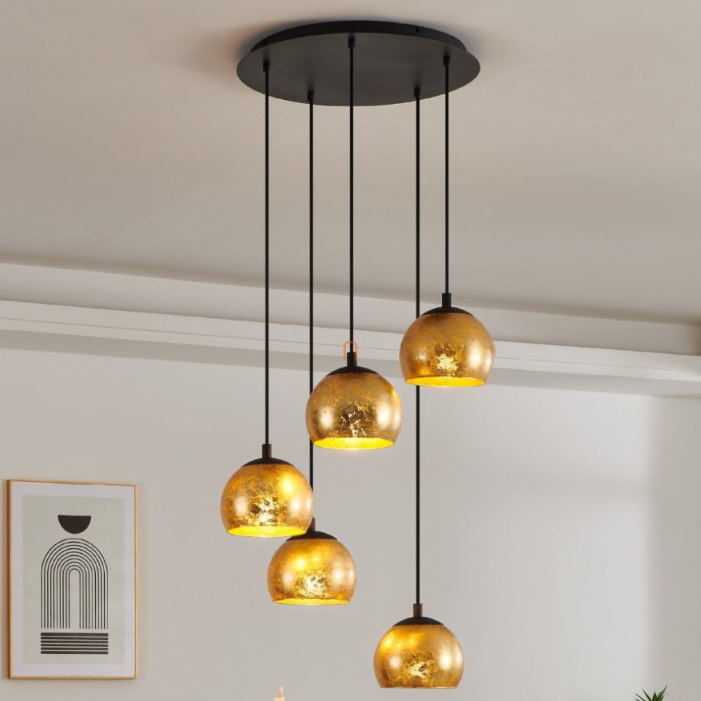 Lampă suspendată cu cinci socluri, efect auriu antic - Albaraccin Eglo 98526