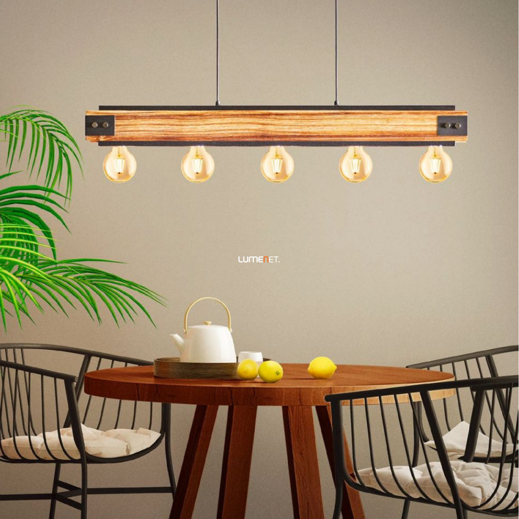 Lampă suspendată cu cinci socluri, lemn-negru - Layham Eglo 43468