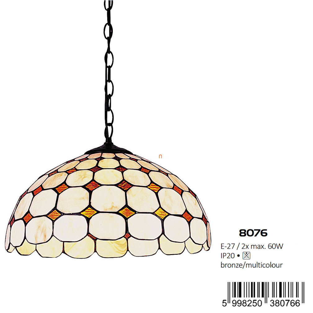 Lampa suspendată Marvel Rábalux 8076 are două socluri E27, permițându-vă să înlocuiți sursele de lumină și să alegeți liber luminozitatea, temperatura culorii și culoarea luminii dorite. Lampa este realizată în stil Tiffany, materialul principal este metalul, iar culorile sunt bronz, bej și chihlimbar. Produsul are un diametru de 400 mm, o înălțime de 1000 mm și o greutate de 4,1 kg. Lampa are protecție IP20, deci este potrivită numai pentru utilizare în interior. Dimensiunile ambalajului sunt: 46 cm lățime, 47 cm lungime și 28 cm înălțime. Sursele de lumină nu sunt incluse în pachet, iar lampa nu este reglabilă. Producătorul este Rábalux, iar codul logistic al produsului este 8076.