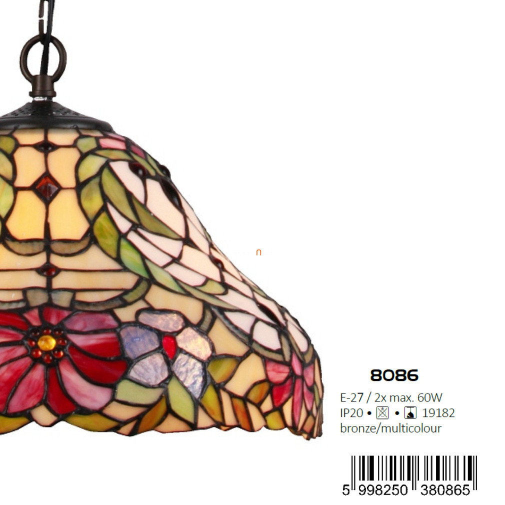 Lampa suspendată Mirella Rábalux 8086 are două socluri E27, potrivite pentru surse de lumină înlocuibile. Lampa are un diametru de 410 mm, o înălțime de 1200 mm și o greutate de 4,6 kg. Produsul este realizat în stil Tiffany, folosind sticlă colorată și materiale metalice din bronz. Lampa are protecție IP20, fiind astfel concepută pentru utilizare în interior. Sursa de lumină nu este inclusă; puterea, fluxul luminos, culoarea luminii și temperatura culorii pot varia în funcție de becurile utilizate. Lampa nu este reglabilă; dimensiunile ambalajului sunt 47x46x29 cm. Produsul este fabricat de Rábalux, cod logistic 8086.