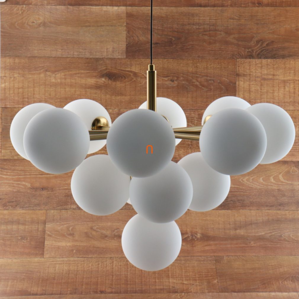 Cu aspectul său modern și parametrii tehnici, lampa suspendată cu glob din sticlă Grappy Globo 56143-13G este alegerea ideală pentru soluții de iluminat pentru locuințe. Corpului de iluminat are 13 socluri G9 care necesită surse de lumină înlocuibile, astfel încât fluxul luminos, culoarea luminii și temperatura culorii pot fi ajustate în funcție de necesități. Lampa este fabricată din metal și sticlă într-o combinație de culori auriu mat și opal, ceea ce îi conferă un aspect elegant. Diametrul este de 560 mm, înălțimea este de 1200 mm, tensiunea nominală este de 230 V, iar nivelul de protecție este IP20. Dimensiunile ambalajului sunt 58x58x35 cm, iar greutatea produsului este de 4,96 kg. Corpul de iluminat nu include o sursă de lumină, astfel încât becurile de tip G9 adecvate pot fi achiziționate separat.